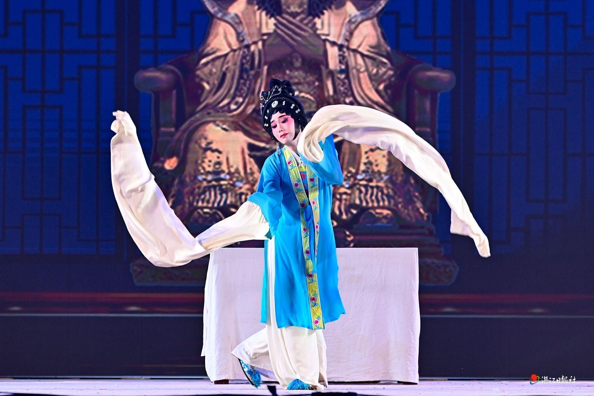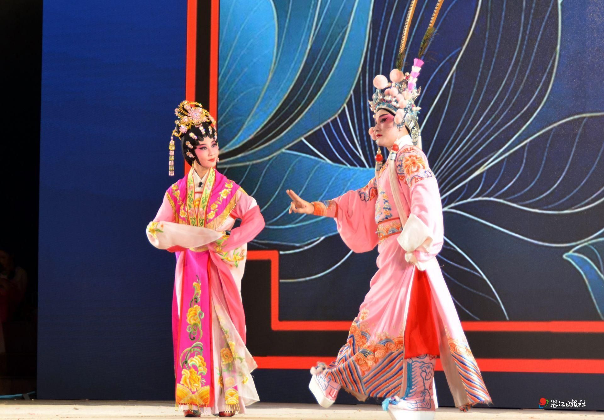 湛江戏曲有雷剧、粤剧、木偶戏等剧种。雷剧折子戏《贵妃醉酒》选段、雷剧唱段《那一天战三英如雷霆轰动》、唱段联唱《雷韵昂扬》,粤曲《荔枝颂》……本次演出以雷剧为主,加上粤曲演唱,4日晚给大家带来了一个精彩纷呈的“戏曲之夜”。国家一级演员、国家二级演员等本土名家还介绍分享戏曲的基本知识和魅力,示范水袖等戏曲表演程式和动作,和观众进行互动,现场气氛热烈。