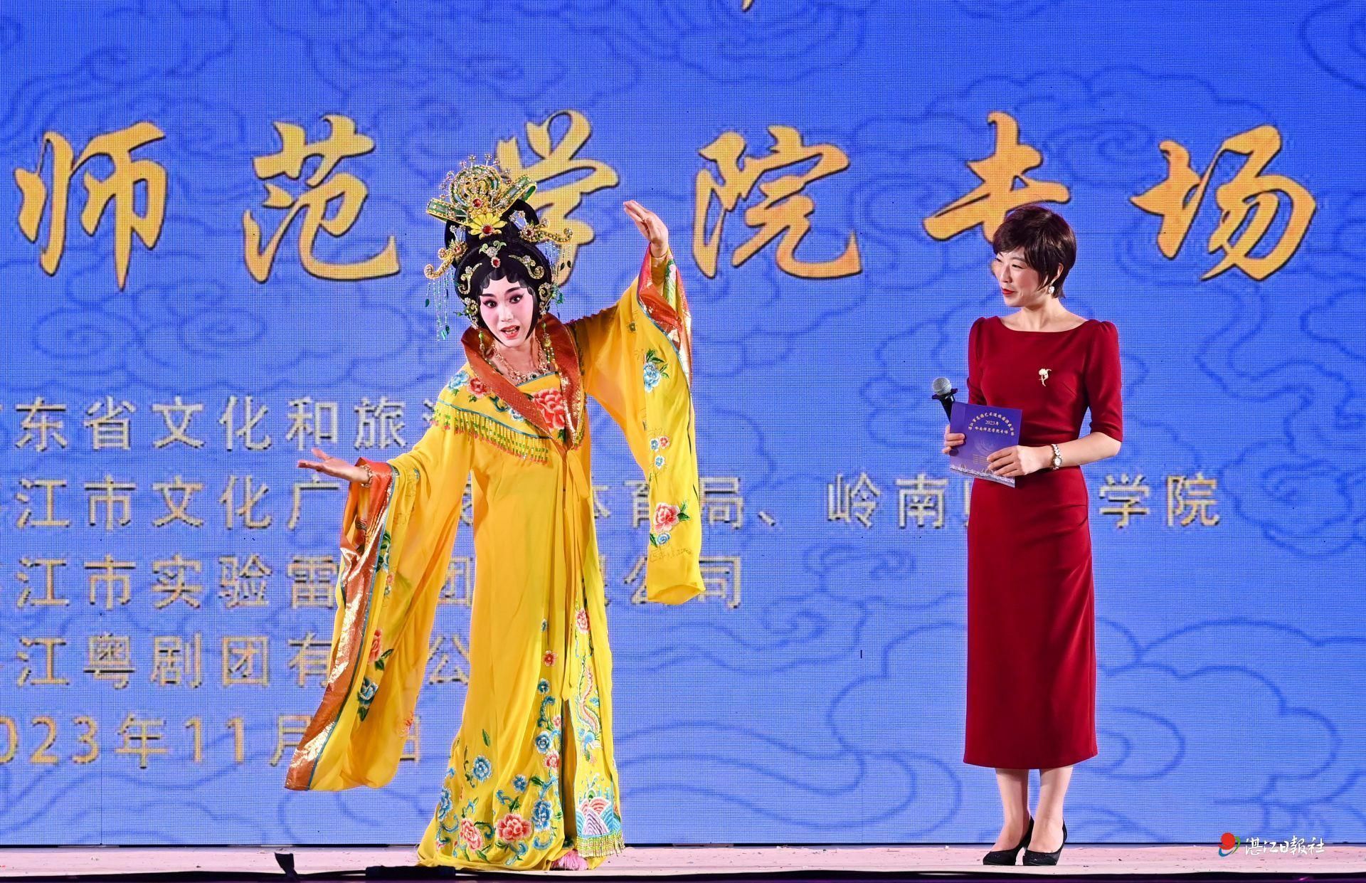 11月4日晚,由广东省文化和旅游厅指导,湛江市文广旅体局、岭南师范学院主办,湛江市实验雷剧团有限公司承办,湛江粤剧团有限公司协办的2023年湛江市高雅艺术进校园演出活动(岭师专场)在岭师雷阳广场举行。