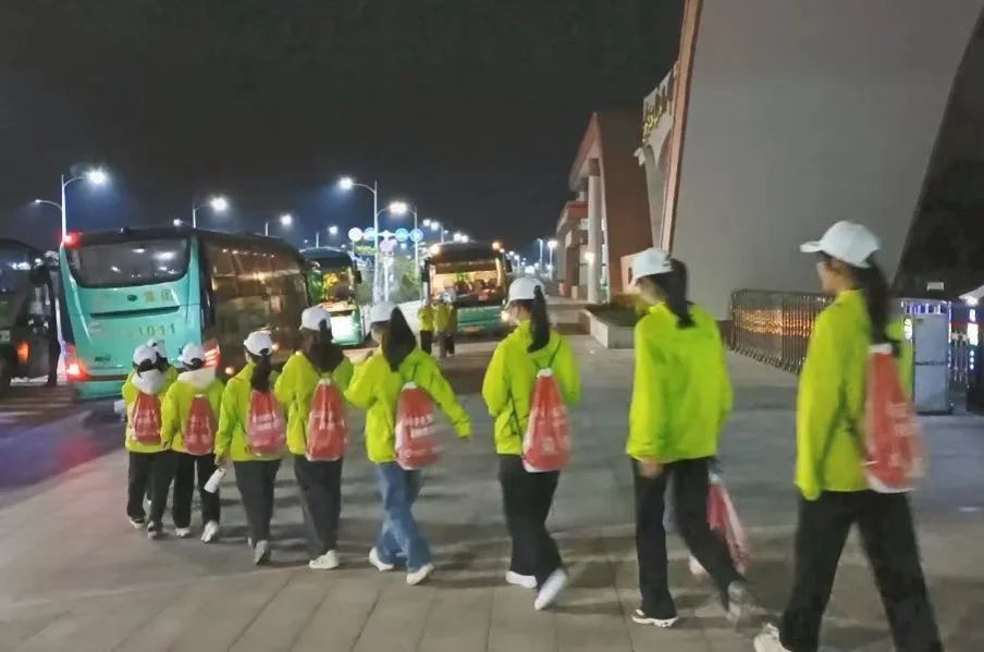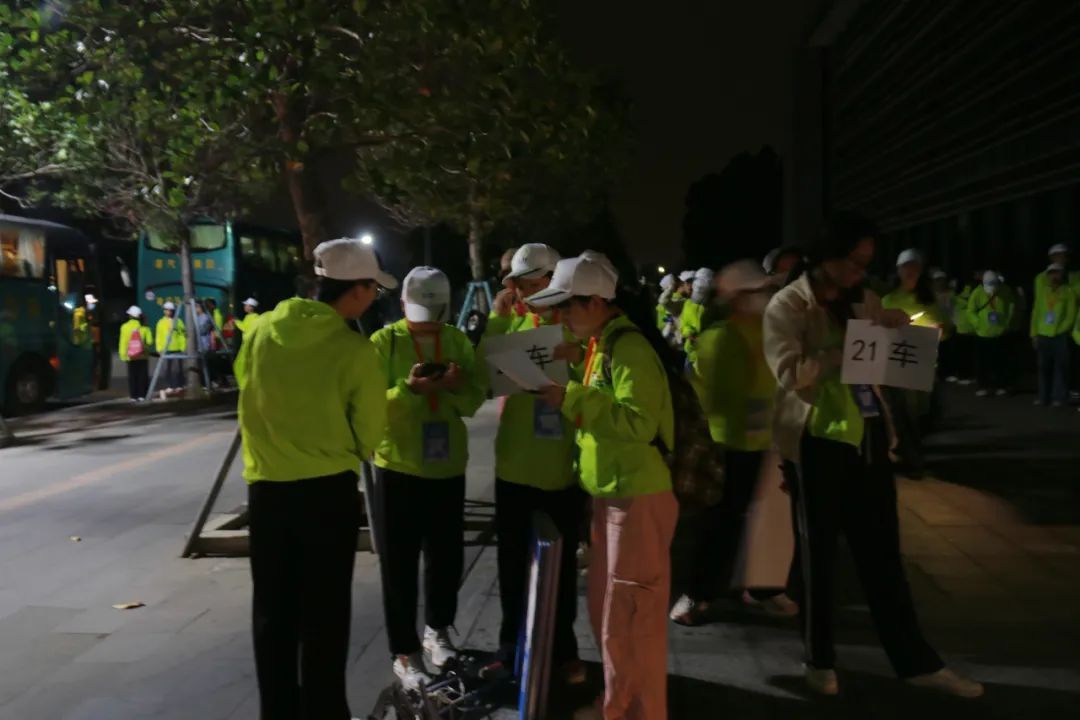 志愿者集合准备前往比赛现场