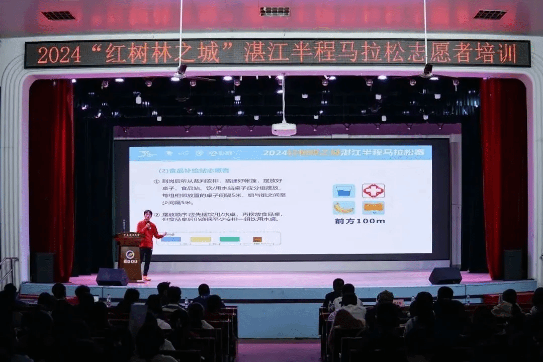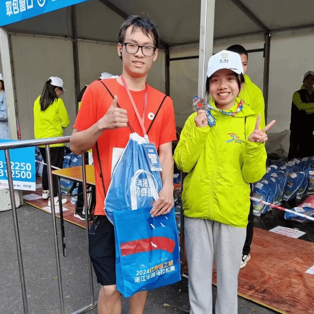 志愿者许锦润负责此次志愿活动的搬运物资工作。他说:“非常荣幸可以作为一名志愿者参加湛江半程马拉松赛。作为存包13号车的组长与24号车车长,身兼数职,首先要确保组内成员及时接收到消息,而后确定24号车所有成员在志愿当天凌晨四点半前集合并清点完毕。感谢我的裁判老师张老师的指导,感谢我的组员在面对存包这一重大任务时服从安排,集思广益,以及积极主动做好每一个细节之处。”