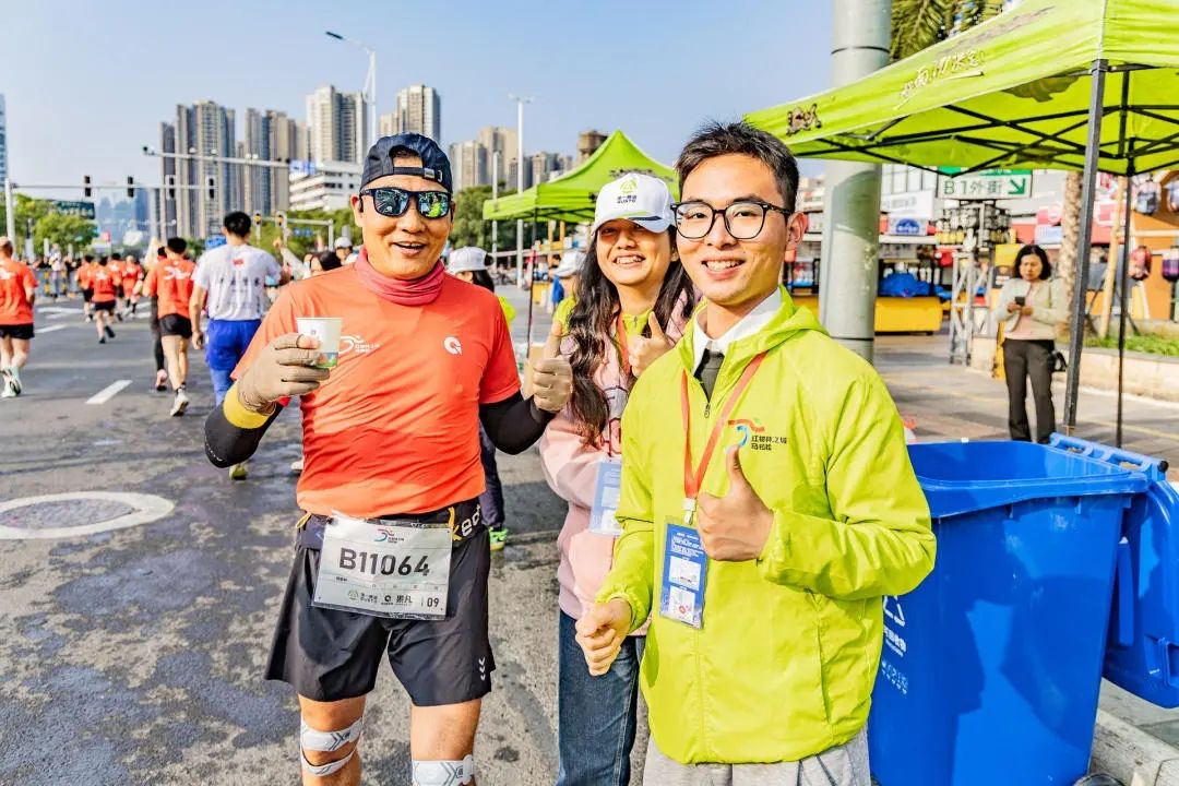 整个城市都在为跑者护航、“陪跑”1486名青年志愿者穿着