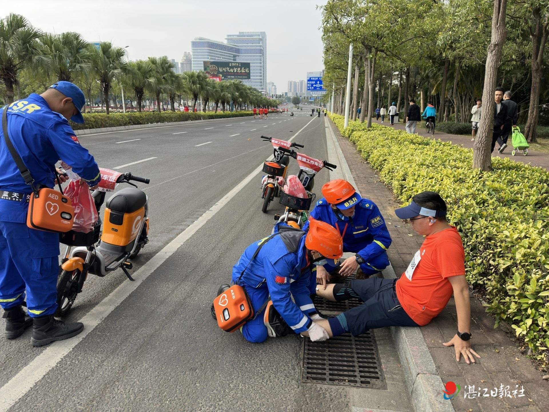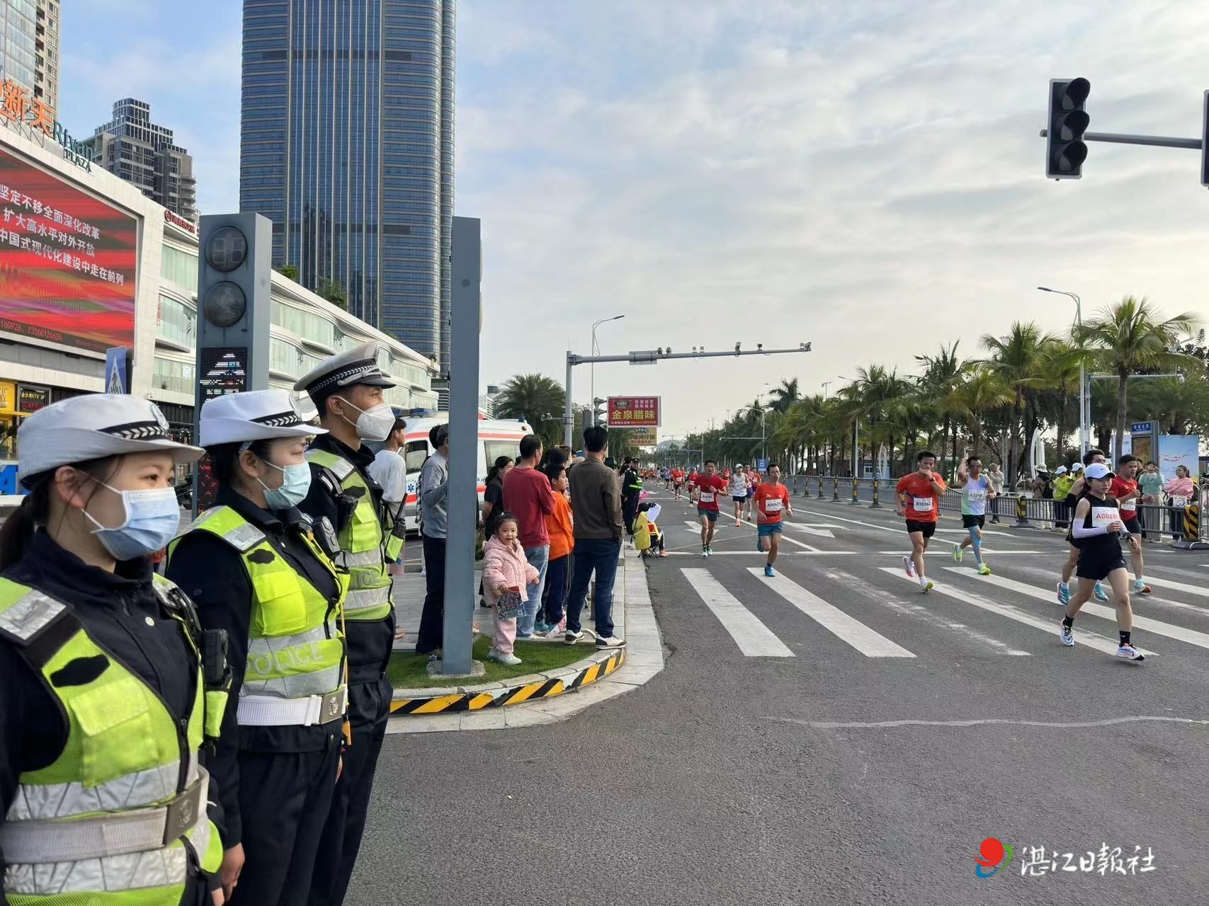 为保证赛事顺利安全进行,比赛当天,湛江警务人员、医务人员、消防人员、志愿者等后勤保障人员严阵以待、协作有序,圆满完成了赛事各项保障任务。