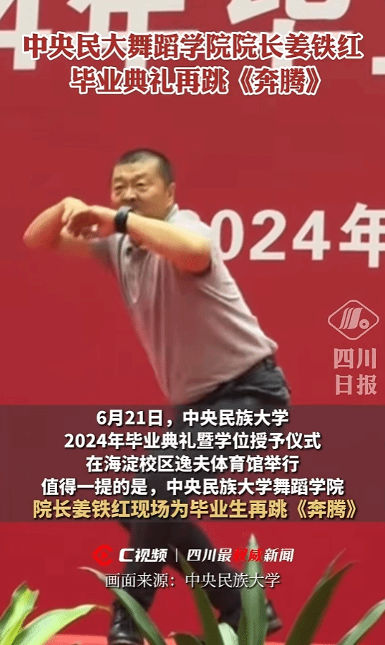 中央民大舞蹈学院院长姜铁红毕业典礼再跳《奔腾》。