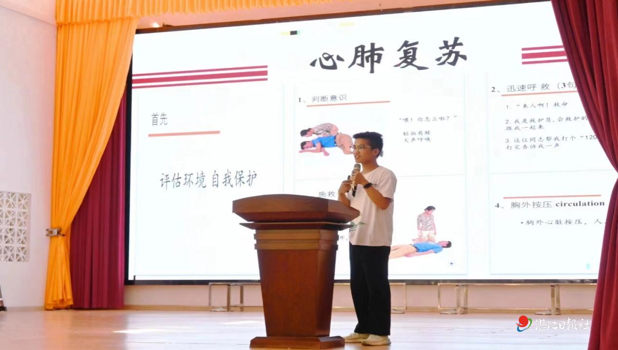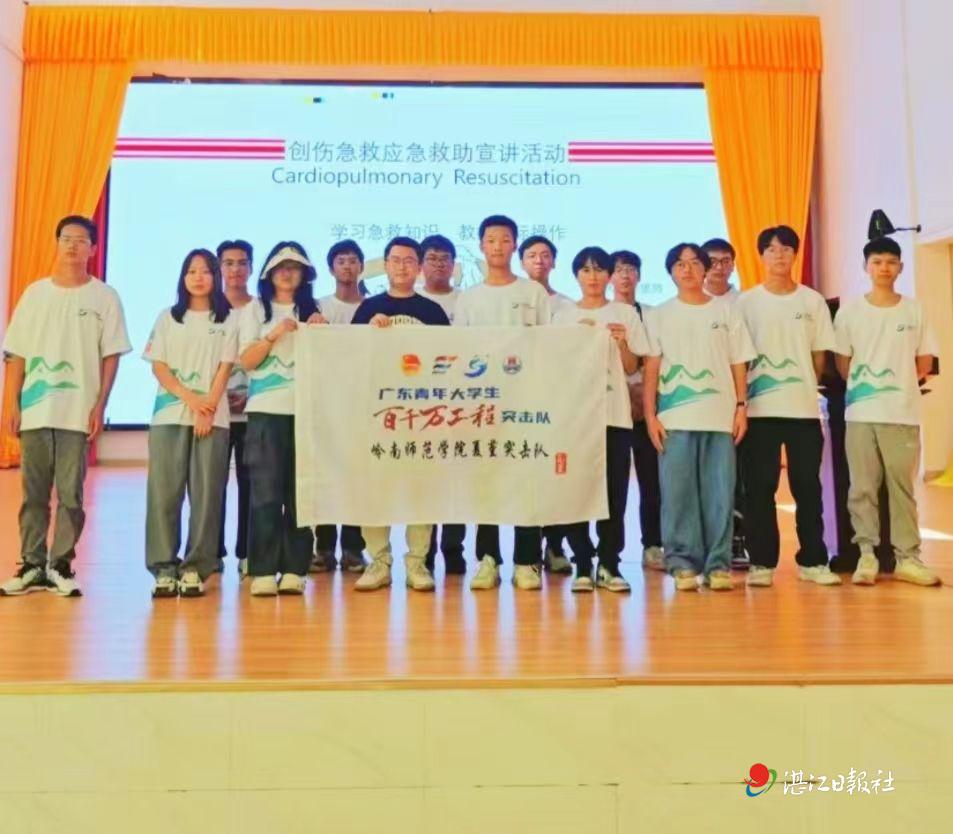 7月10日岭南师范学院夏堇突击队走进湛江市坡头区乾塘镇,开展以“守护生命,我们在行动”为主题的创伤救护知识宣讲活动。