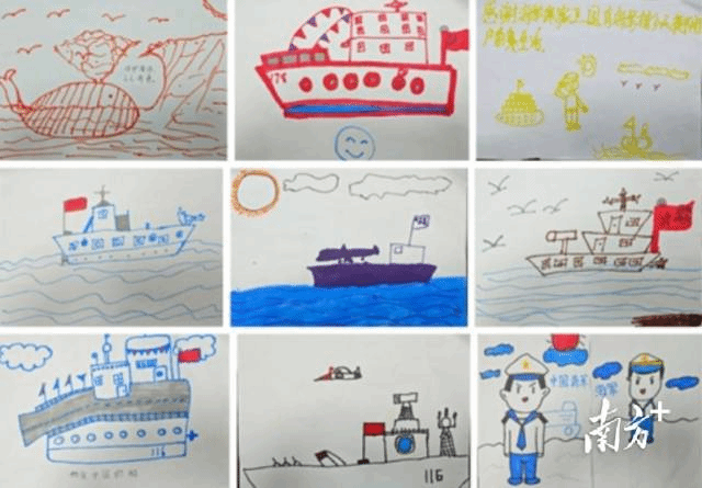 从广袤的海洋到英姿飒爽的海军,再到雄伟的装备、设施,这些都是孩子们对这片海洋和海军最真诚的情感表达。