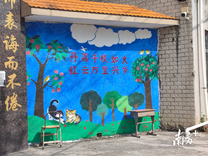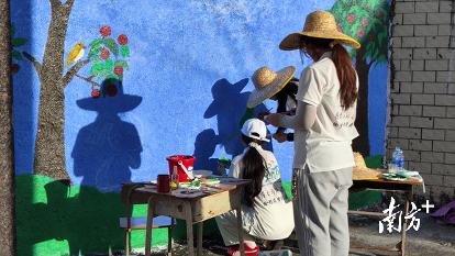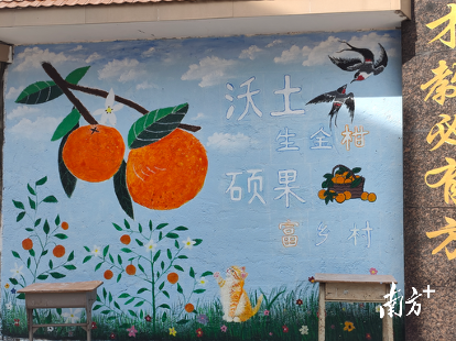 在墙绘过程中,队员们顶着烈日,用画笔勾勒出硕果累累的沃柑和荔枝,画面中人与自然和谐相处等元素生动呈现了现代乡村的发展活力。原本单调的墙面焕然一新,色彩鲜艳的图案不仅美化了乡村环境,更成为宣传当地特色农业的“活广告”。