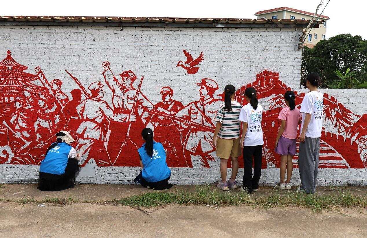 队员小陈说,突击队决定以 “赓续红色血脉,绘美乡村新颜” 为主题,通过红色墙绘生动再现了军民携手为国奋斗的历史场景,如红军战士冲锋的身影、群众送军粮的温情画面。“农房不再只是居住的空间,更成了串联历史与当下的纽带,每一面墙都在诉说着过去的奋斗、现在的幸福。”