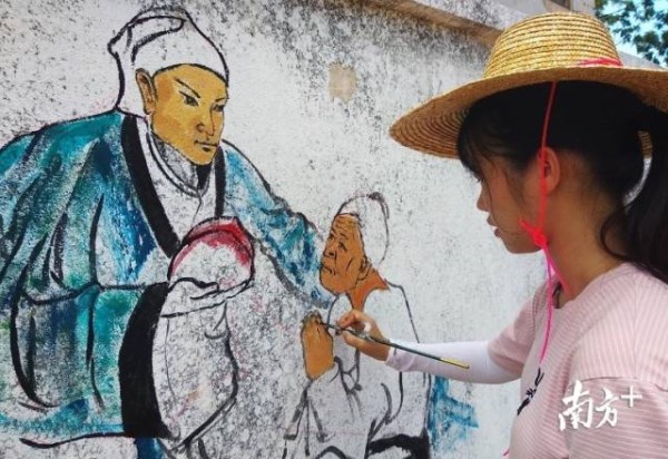 恬神村是被帮扶的定点扶贫村,驻村第一书记李红春介绍,岭南师院10名大学生深入村庄,用专业技能将社会主义核心价值观图像化,既美化了乡村,也符合当前在贫困地区开展疫情防控和爱国卫生运动工作要求,引领积极向上的好家风、好村风、好民风,让社会主义核心价值观在农村落地生根,助力打赢脱贫攻坚战。