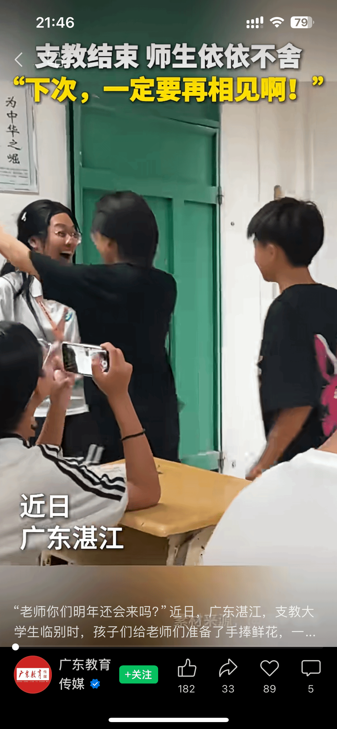 “老师你们明年还会来吗?”近日,广东湛江,支教大学生临别时,孩子们给老师们准备了手捧鲜花,一句“我没哭”感动在场师生。网友:山水一程,愿下次相聚,你们皆光芒万丈!
