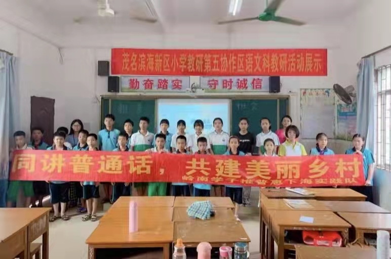 为深入贯彻习近平总书记关于教育的重要论述精神,响应国家“推普助力乡村振兴”的号召,在岭南师范学院教务处、校团委、语委办以及数计学院领导老师的指导下,岭南学子“推普惠下海实践队”于今年暑期前往广东省茂名市滨海新区电城镇爵山下海村,开展“同讲普通话,共建美丽乡村”推普宣传活动。
