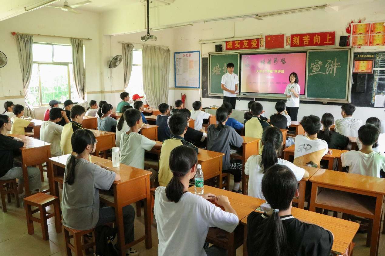宣讲团成员除深入学生党团支部、班级、学生社团和其他各类学生群体进行宣讲外,还以暑期大学生社会实践活动为契机,重点围绕百年党史等内容,深入乡村、街道、社区、中小学幼儿园进行宣讲。宣讲团成员主动加入各社会实践队,把党史学习作为各实践队每天的必修课,如体育科学学院的“萌芽”社会实践队队员胡斯凯和陈媛媛在上杭中学开展党史宣讲,为乡村教育事业注入“萌芽”力量。宣讲团通过重温革命历史、参观红色遗迹、开展主题宣讲、举办专题活动相结合的方式,打通了党史基层宣讲的最后一公里,让红色基因渗入血脉、融入灵魂,让乡村中小学课堂“红”起来。