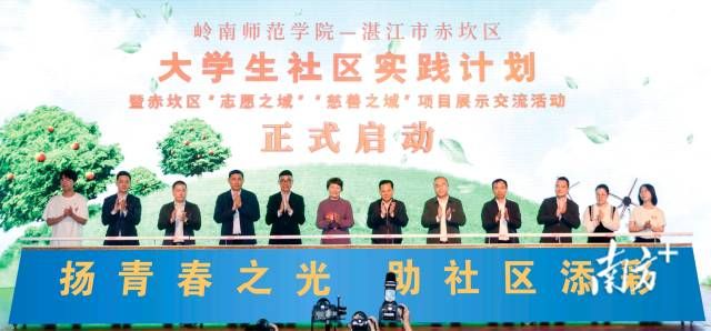 岭南师范学院与赤坎区“大学生社区实践计划”的启动,将青春同服务人民的事业实践高度契合,使岭师学子青春的能量在“千年古商埠”的土地上充分迸发。赤坎区委区政府将创造最好条件、营造最优环境、给予最大支持,让赤坎成为岭南师范学院实践育人、科研项目成果转化的热土,助力岭师建设特色鲜明的高水平师范大学;让岭师学子在“千年商埠、善美赤坎”的建设热潮中施展抱负,在打造“五新赤坎”的实践中出彩闪光、绽放绚丽之花。