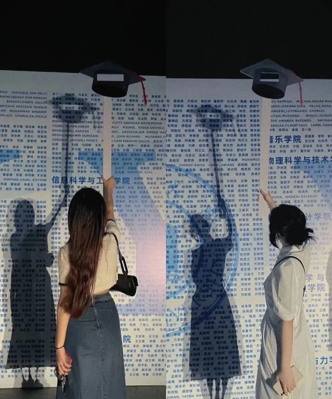 毕业典礼之前,学校在体育馆门口立了一块写满了全校毕业生名字的大牌子。我和好朋友一起在密密麻麻的姓名中,找到了自己的名字——这是我第一次因毕业伤感落泪。@半糖栗子