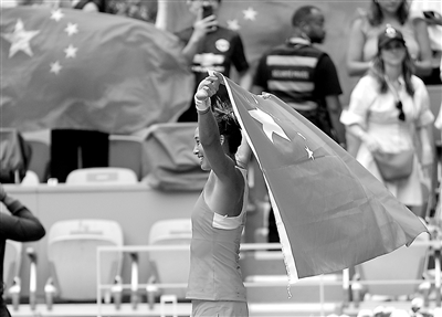 | ③8月3日,郑钦文身披国旗庆祝夺冠。新华社记者 万象 摄 |