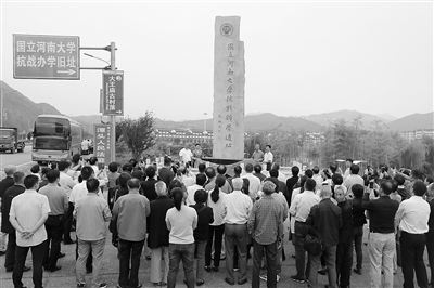 9月15日,河南大学抗战办学旧址纪念碑揭牌仪式现场。河南大学供图