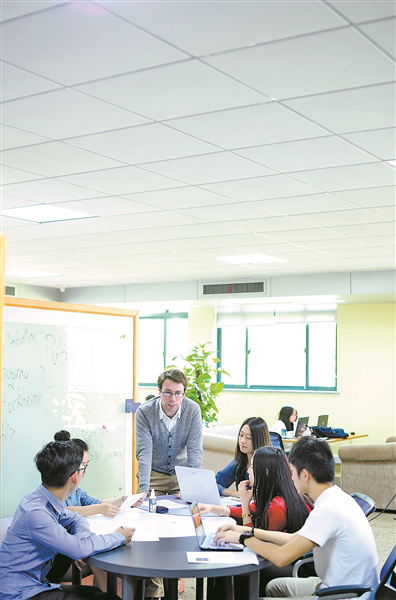 国际传播学教师Paul Martin和学生进行小组讨论。宁波诺丁汉大学供图