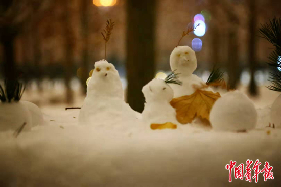 雪落后,小小的雪人装点世界。中青校媒记者 张曈钰/摄