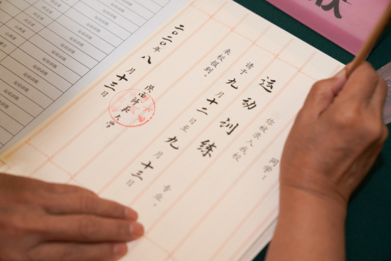 陕西师范大学每一年的录取通知书都由老教授毛笔手写,一行一字传递师长对学生的嘱托。陕西师范大学供图