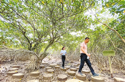 “作为一种高生产力的生态系统与重要的‘碳汇’,红树林生态系统具有重要的社会、经济和生态价值,在防风消浪、固岸护堤和维护海岸生态平衡等方面发挥着重要作用。”湛江红树林国家级自然保护区工作人员告诉记者:“红树林也是海洋潮间带重要的生物栖息地,为鱼类、甲壳类、鸟类、底栖动物和其他水生动物提供优越的栖息环境。”
