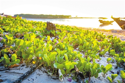 半红树植物是指既能生长在海岸潮间带,也能在陆地非盐渍土生长的两栖木本植物。半红树植物也是各具特色。例如,银叶树的花、叶和果实都具独特观赏价值,木材红色,材质优良,种子富含淀粉,可食用,亦可榨油。海檬果的花香、果形奇特,是滨海地区优良的园林绿化树种,木材质地轻软,常用于制造箱柜、木屐等;钝叶臭黄荆,枝叶青翠、明亮光泽,适用于花坛美化、绿篱或盆景。水黄皮、黄槿、玉蕊等可形成独特的护岸林带。