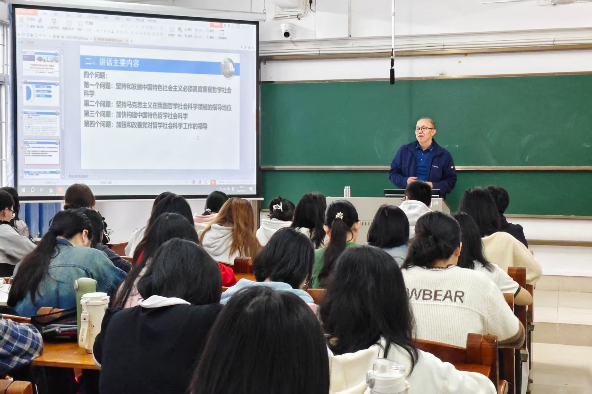 3月11日,文学与传媒学院院长阎开振以“深学细悟习近平总书记在哲学社会科学工作座谈会上的重要讲话精神”为主题,在教三706为文传学子开讲思政第一课。