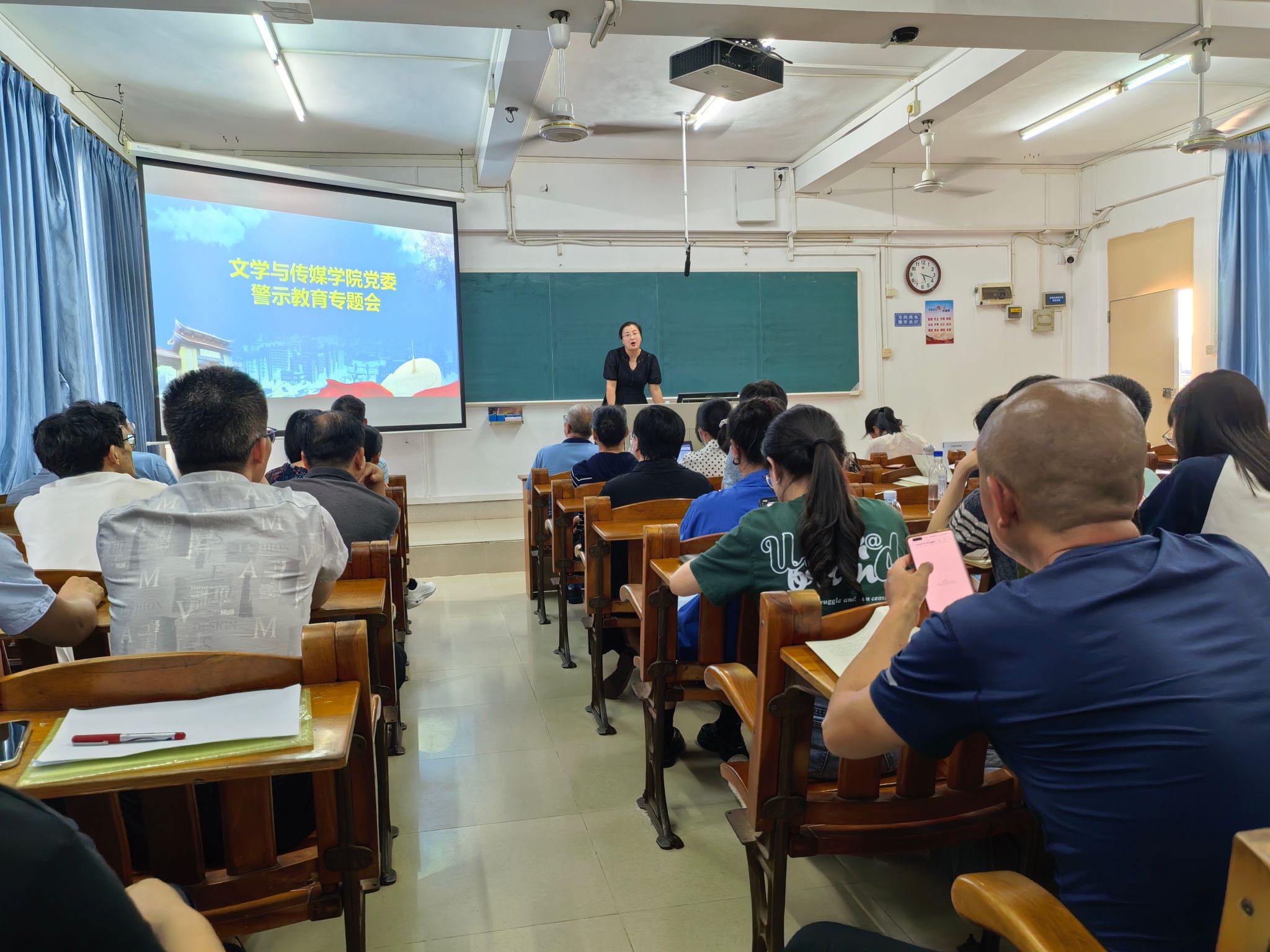 近日,文学与传媒学院党委召开警示教育专题会。文学与传媒学院党委书记陈凯珍主持会议,全体教职工参加会议。
