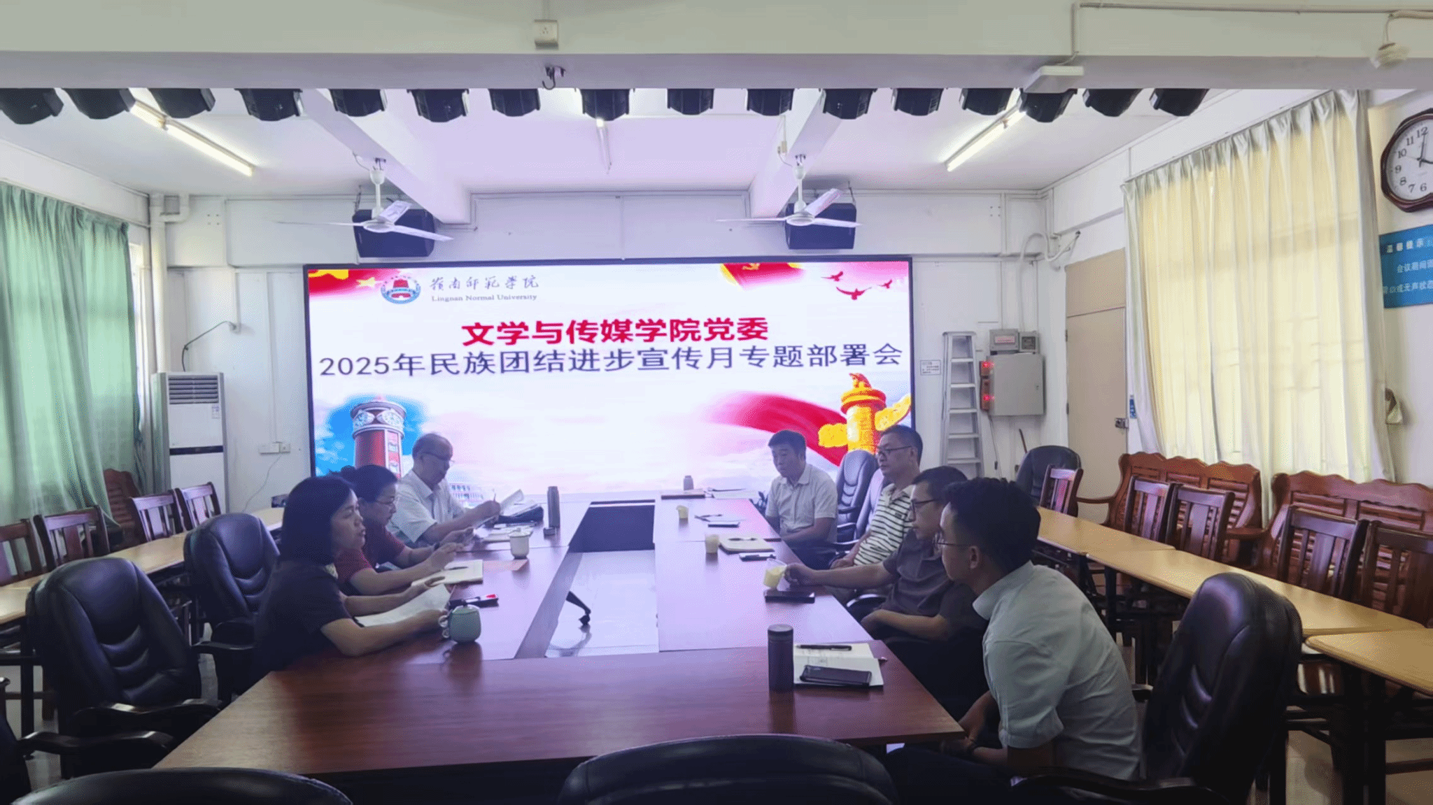 为深入学习贯彻习近平总书记关于加强和改进民族工作的重要思想及党的二十大精神,全面落实中央民族工作会议精神、《新时代学校民族团结进步教育指导纲要》与学校关于开展2025年民族团结进步宣传月活动的通知要求,切实铸牢中华民族共同体意识,10月10日,文学与传媒学院党委组织召开2025年民族团结进步宣传月专题部署会。学院党委全体领导参会,会议由学院党委书记陈凯珍主持。
