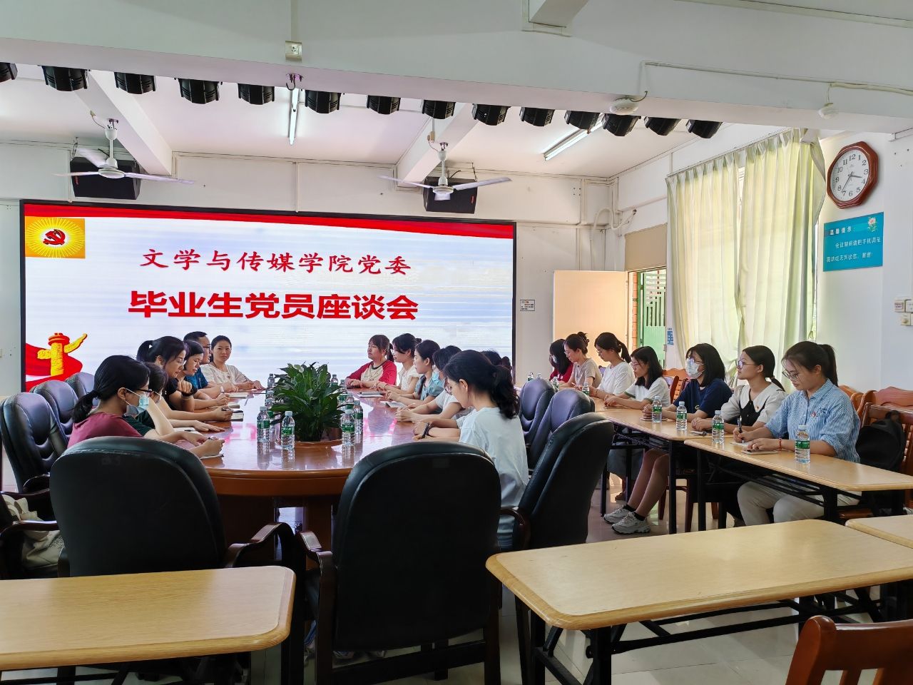为深入开展学习贯彻习近平新时代中国特色社会主义思想主题教育,加强调查研究,6月19日,文学与传媒学院党委2023届毕业生党员面对面座谈会在学院会议室召开。文学与传媒学院党委书记陈凯珍、党委副书记梁碧斐、组织员林春大老师、辅导员梁海珍老师与学院各专业的毕业生党员代表进行了座谈交流,听取了2023届毕业生对大学学习和生活的感悟以及对学院建设和发展的意见、建议。会议由学院组织员林春大主持。