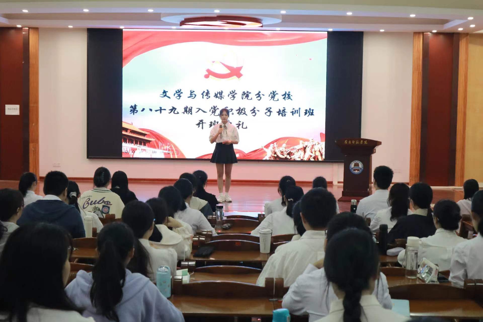 10月22日,文学与传媒学院分党校在第三教学楼211室开展第八十九期入党积极分子培训班开班典礼。文学与传媒学院党委书记陈凯珍、辅导员李诗欣老师、学生党建中心干部以及本期培训班学员参加了本次开班典礼。