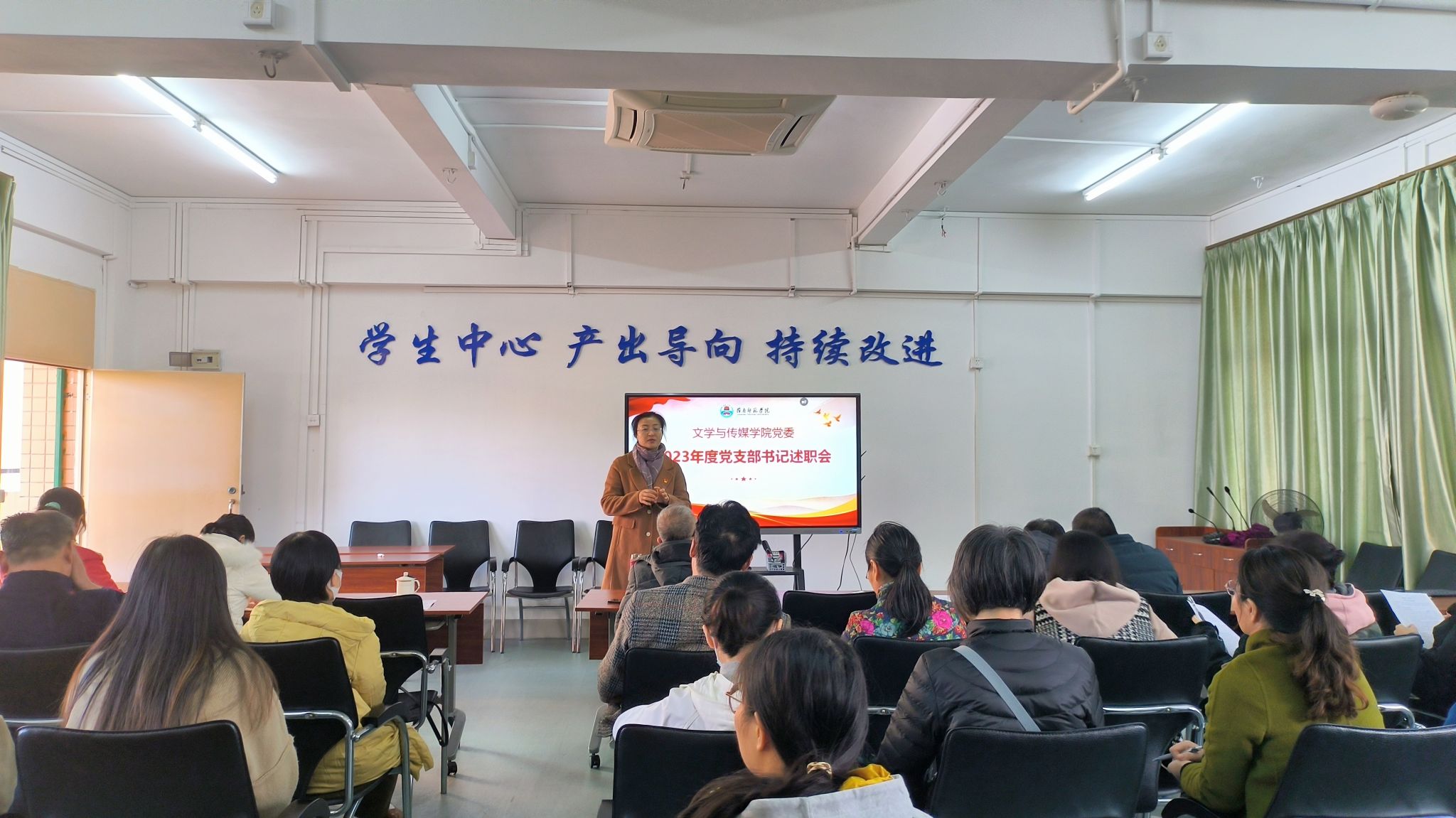 为深入学习贯彻党的二十大精神,强化党支部战斗堡垒运用,积极推进党组织规范化建设,近日,文传学院党委在教三501召开了2023年度党支部书记述职评议大会,学院党委委员、党支部书记、各支部支委参加了本次会议。会议由学院党委书记陈凯珍主持。