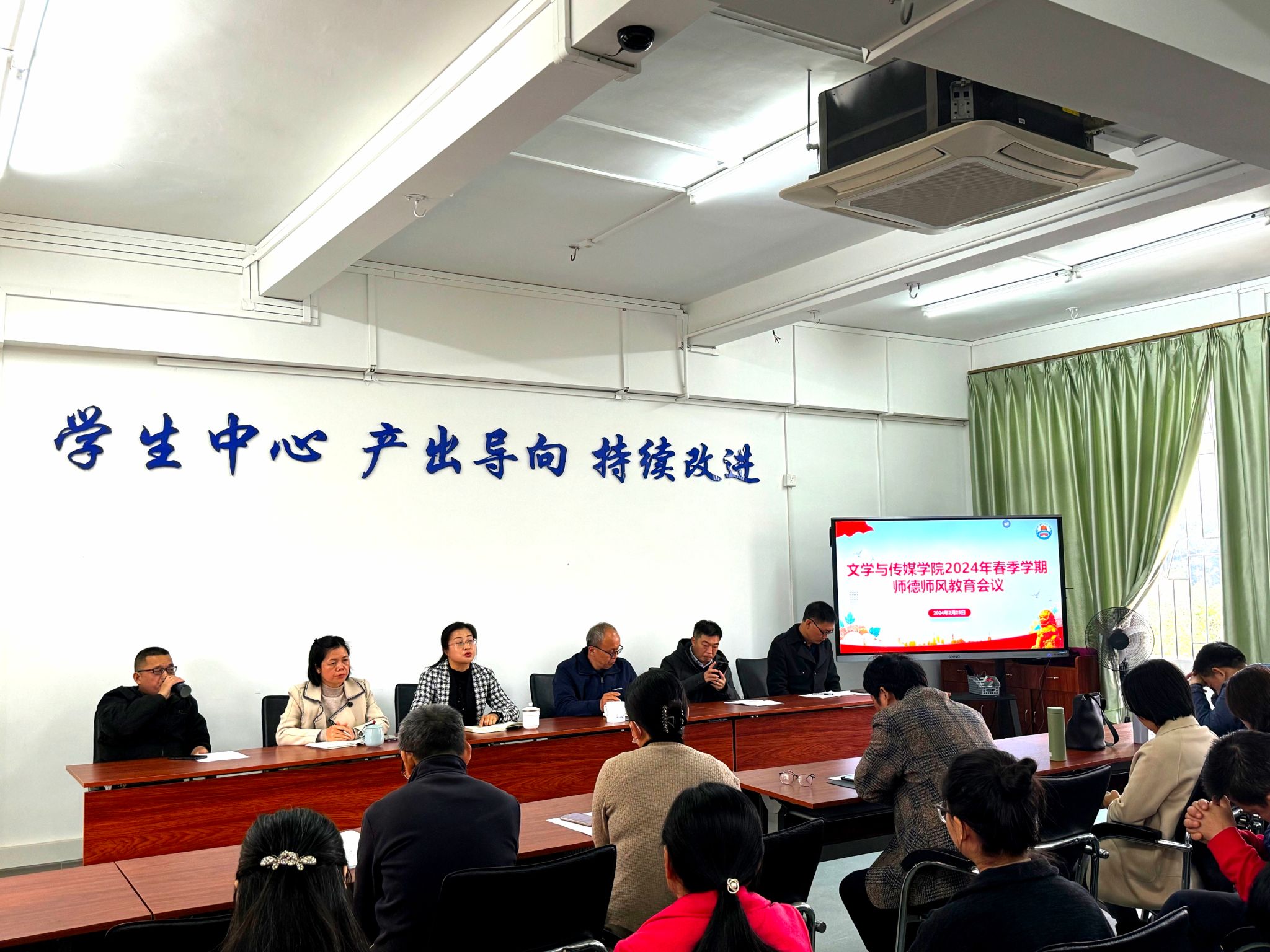 为进一步加强教师师德师风建设、全面提高文学与传媒学院教师的职业素养、营造良好育人环境、不断提升服务质量,2月25日,文学与传媒学院在第三教学楼501会议室召开了本学期师德师风专题学习会。会议由学院党委书记陈凯珍主持,全体教师参加。