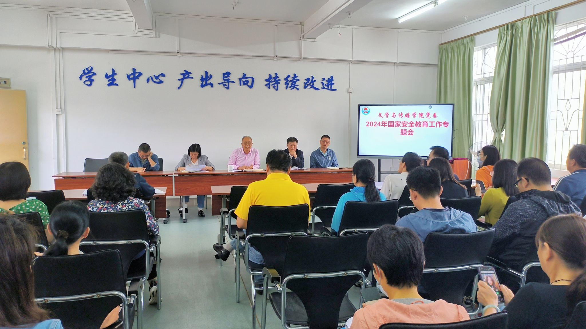 4月10日下午,文学与传媒学院党委在第三教学楼501召开了2024年国家安全教育工作会议。学院领导班子、全体教职工参加了本次会议。会议由学院党委副书记梁碧斐主持。