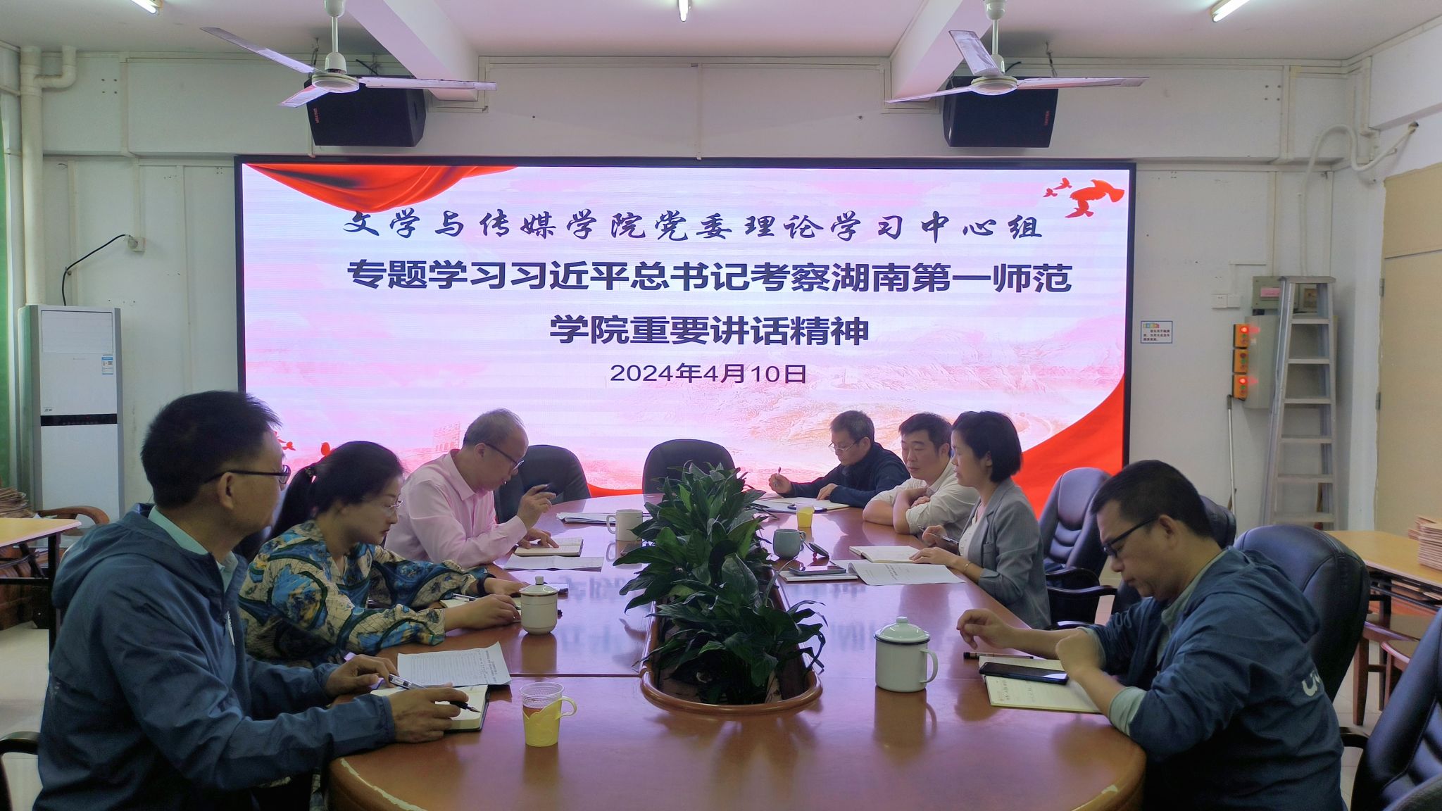 近日,文学与传媒学院党委理论学习中心组专题传达学习习近平总书记考察湖南第一师范学院重要讲话精神,结合学校党委部署要求,研究学院贯彻落实意见。