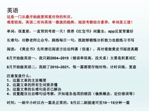 胡紫筠提到本科阶段的学习是不可忽视的,每一步都决定了未来的发展方向。本科阶段涉及的知识面较广,学的东西较多,是考研的打地基阶段。每一门科目都不能放弃,因为每一步都是在为未来铺路。在学习期间,她也不断寻找着自身更喜欢、更擅长、更有优势的方向。对于优势科目,她也给我们提供了个人的学习方法与技巧。在英语方面,她强调单词一定要背到最后一刻,每周要坚持长难句的打卡;在阅读理解方面,她提到不要深究正确率,应该以掌握做题方法、理解文本意义为重;英语小三门从自身需求入手,根据能力水平做相应水平的题目,不陷入听课的“死胡同”;作文忌套用模板,多写多练成就属于自身的语句。在政治方面,坚持基础知识的背诵,利用好碎片化时间背诵小手册。“背到最后一刻,哪怕像我一样背到哭都好,把它都背下来,说不定在考场上就用到了”。虽然备考期间也遇到了很多的困难,但我始终相信“平芜尽处是春山”!