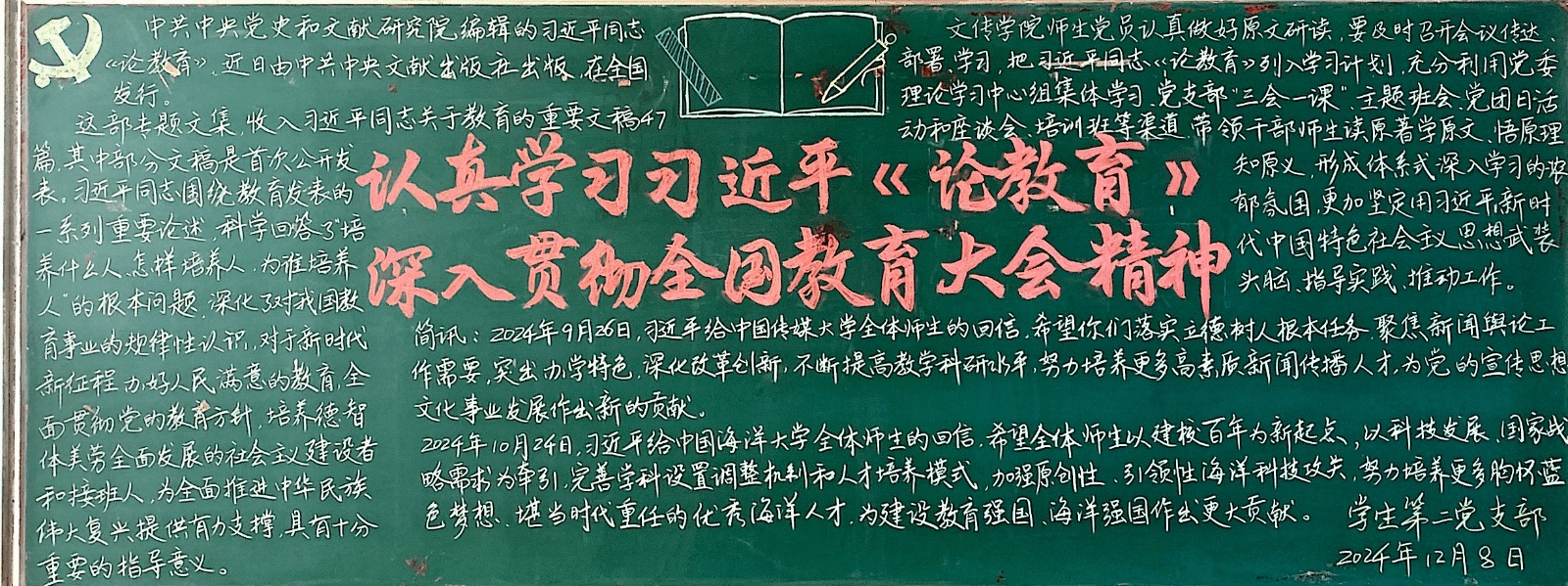学生党建工作落实“思源·文传”“躬行.文传”“弘文.红文”三大培根工程,启动党建润心启智铸魂行动。具体表现为:落实“书记院长思政第一课”一把手培根铸魂行动,提升学生党建理想信念引领度;开展党组织建设与学生党员发展调研行动,提升学生党员教育管理的规范性;推动党建干部参加校级红色党史知识竞赛,提升学生党建中心的显示度;开展党建干部党务知识大讨论,推动党务工作高质量发展;开展系列党员集体谈话会,深化党员政治理论学习;开展红色校史人物系列宣讲活动,增强青年学生爱校荣校情怀;开展“师生支部牵手1+1”互助行动,提高师生支部融合党建深度发展;推动学生走入红色基地、走进中小学课堂,推动专家走进文传分党校,深化党纪学习教育;发挥党员先锋带头作用,在教学评估、台风灾后校园清洁、迎新工作等重要事件中设立党员志愿服务先锋岗,提升党员作用发挥显示度;启动青年党员红色微讲堂“薪火工程”,扩大红色主题宣讲氛围;发挥分党校阵地优势,强化党支部组织生活红色实践,推动党团牵手红色主题宣讲,形成立德树人、培根铸魂、启智润心的学生工作“三全育人”实践形态,为学院“三全育人”体制机制建设提供学工支撑。