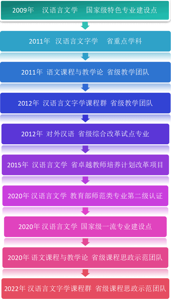 学院现有在校全日制本科生2000余人。专任教师90余人,其中教授、副教授占比56%,均开设本科生课程,并积极投身于本科生人才培养。近五年来,学院持续探索和实践创新型卓越文学类人才培养,深入贯彻“新师范”“新文科”理念,抓住“师范专业第二级认证”和“新文科”建设机遇,积极探索文学类应用型卓越人才培养全新模式,形成了“以德修身、以文启智”“知行合一、内外协同”的人才培养路径,以服务文化强国国家战略需求及地方现实需要。