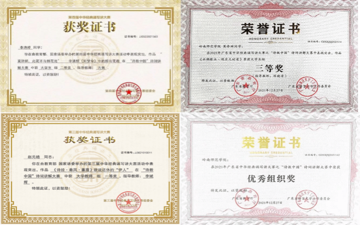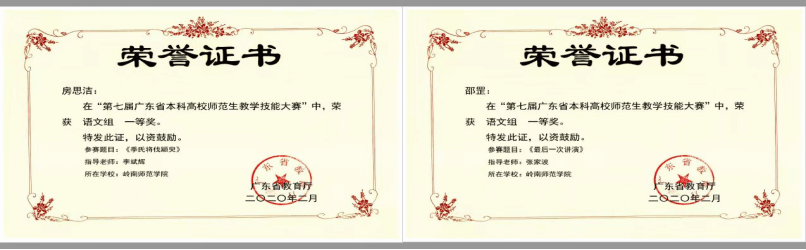 “广东省本科高校师范生教学技能大赛”所获部分荣誉