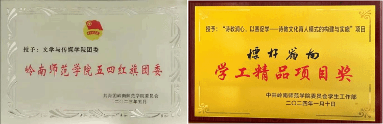 学院结合各专业性质特点,聚焦文学类专业学生的核心素养,以“读说写-教研创”六力型卓越人才培养为目标,开展了系列第二课堂建设活动。组建了“演讲朗诵艺术协会”“读书协会”“诗文书画协会”“千色飞翔网络电台协会”“中国风文化交流协会”“雷雨话剧协会”六大社团,开展了朗诵比赛、读书交流、播音主持、话剧表演、国风交流等一系列社团活动,以上社团多次荣获“校级十佳社团”“星级学生社团”“榜样社团”“优秀社团”等荣誉称号,长期开展“文学节”“椰林晨读”等大型校园文化活动。丰富的第二课堂让学生获得大量实践机会,全面提高了学生的综合素质。
