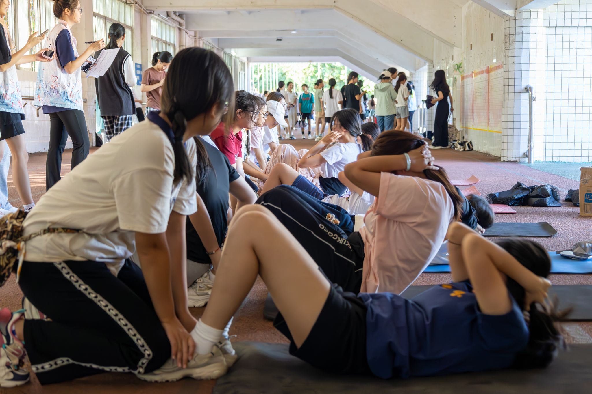 在力量项目中,仰卧起坐和引体向上成为了同学们展示实力的舞台。他们坚韧不拔,不断突破自己的极限,即便早已面红耳赤,他们也咬紧牙关,为下一个目标努力着。