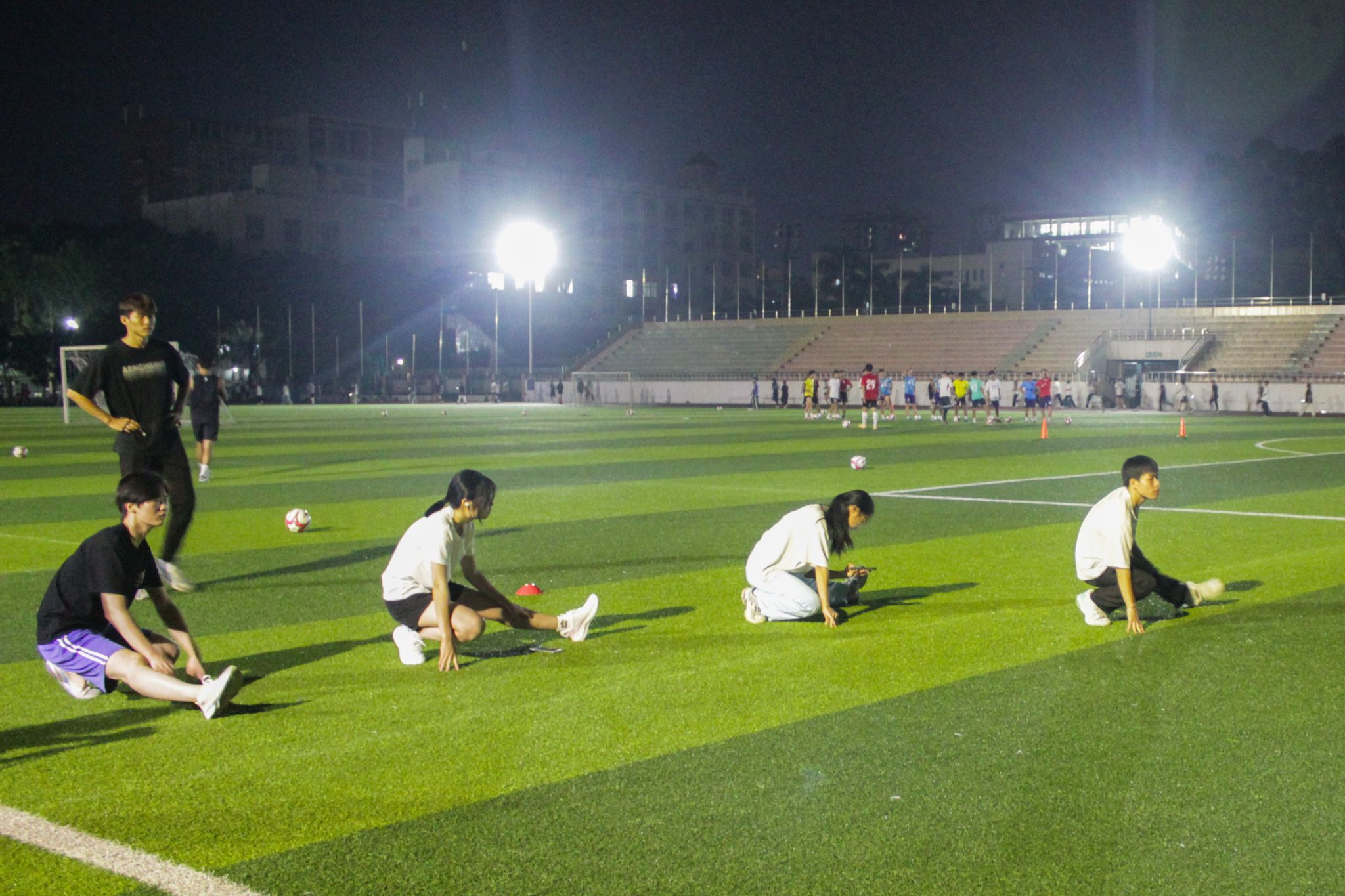 训练结束后,李诗欣老师贴心为选手们分发运动饮料,并暖心提醒他们晚间训练要注意及时擦汗,天气转凉须做好保暖措施,老师的关怀如涓涓细流,舒缓了同学们训练的疲惫。