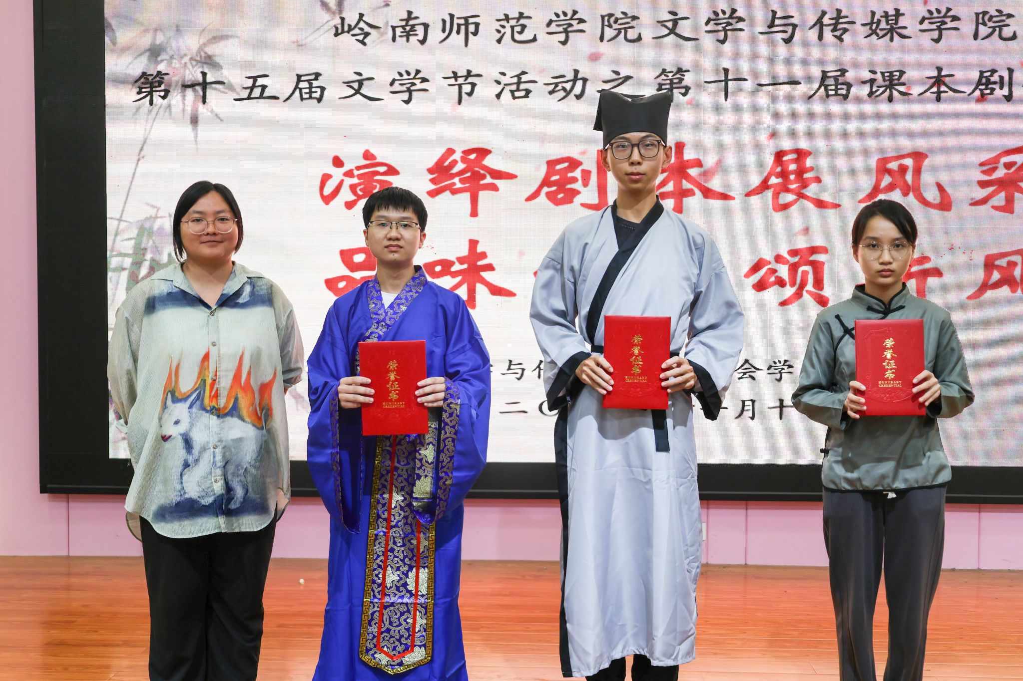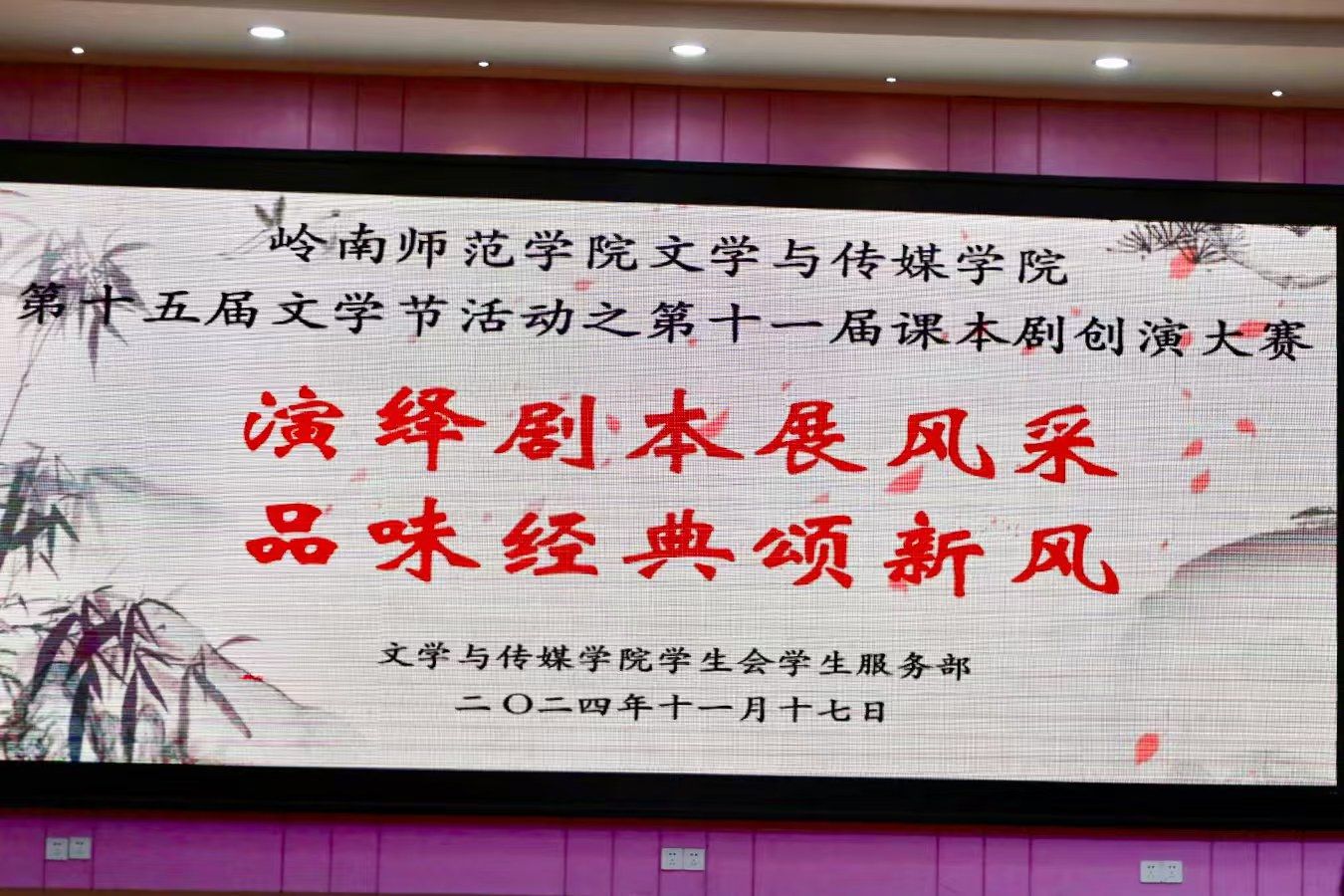 看书中人物穿梭古今,于起承转合间润泽生命。为推动校园文化建设、提升学生文学素养,岭南师范学院第十一届课本剧创演大赛决赛于11月17日晚在第三教学楼311教室举行。本次以“演绎课本展风采,品味经典颂新风”为主题的活动由岭南师范学院文学与传媒学院学生会承办。