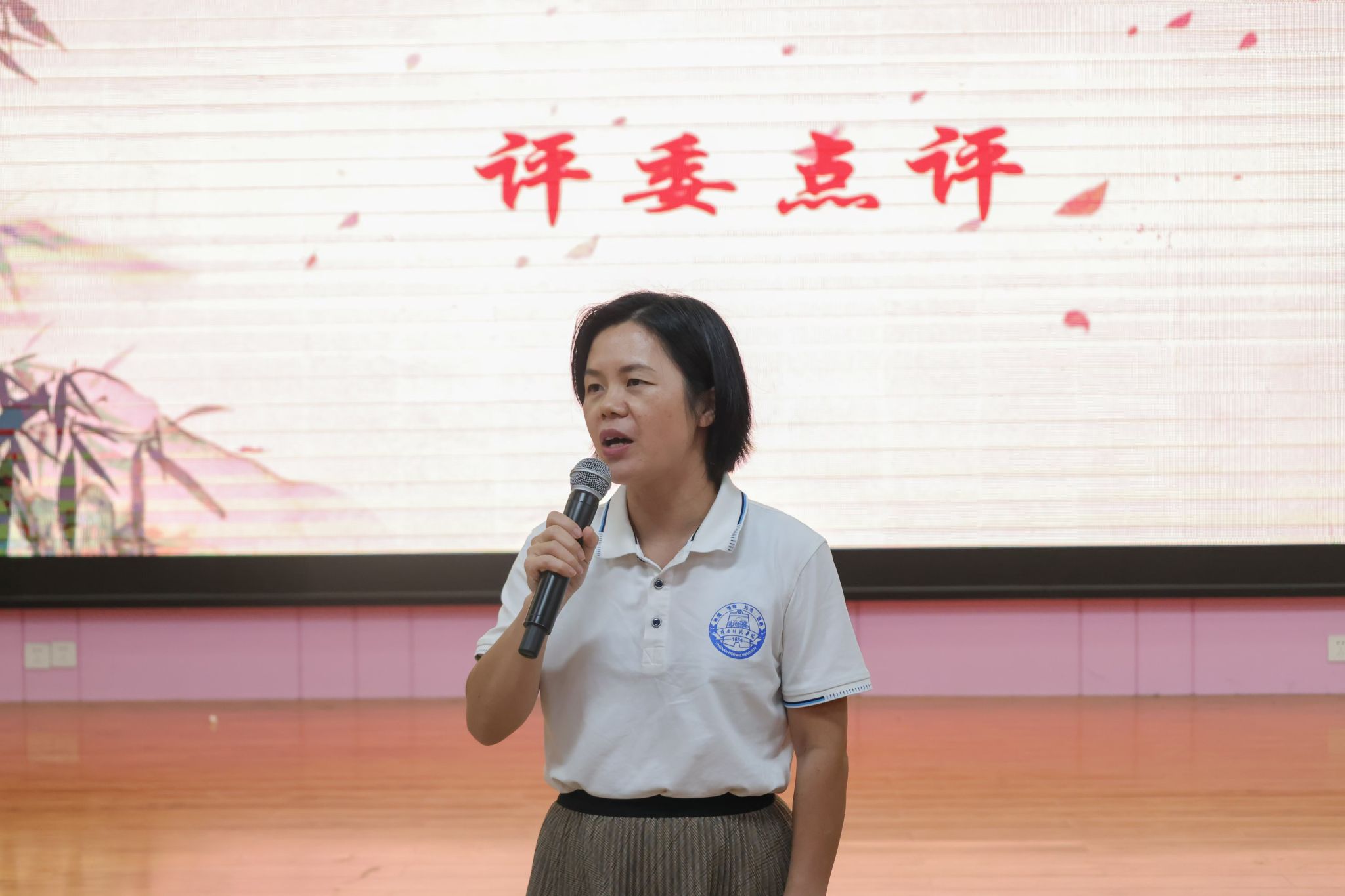 比赛接近尾声,文学与传媒学院黄高飞老师和梁碧斐副书记分别对本次比赛进行点评。首先,黄高飞老师对本次课本剧大赛各剧组的表现给予了高度评价,指出他们在服装、道具、表演技巧等多个方面均准备充分,忠实于原著精神,满足了观众的期待。同时,他也提出了两点建议:一是创新应以保持原著质量为前提,二是创作需把握历史真实性。黄老师寄语演员们,期望他们能以本次比赛为契机,在未来的日子里演绎好各自的人生篇章,收获更加精彩的人生旅途。紧接着,梁碧斐副书记则强调了课本剧的初衷,即通过表演促进课本学习,将平面的文字转化为立体的艺术展现,以艺术形式丰富校园文化生活。对于未来的课本剧发展,她寄予厚望,希望作品能具备明确的价值导向,特别是针对中小学生群体,应引导他们向往光明,追求真善美。最后,梁副书记向所有评委、台前幕后的工作人员及演员们表达了诚挚的感谢。
