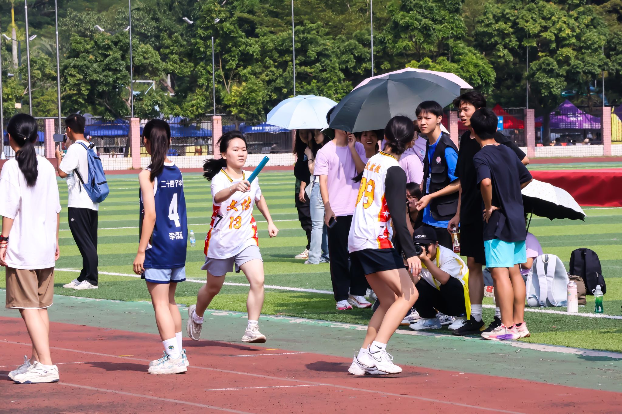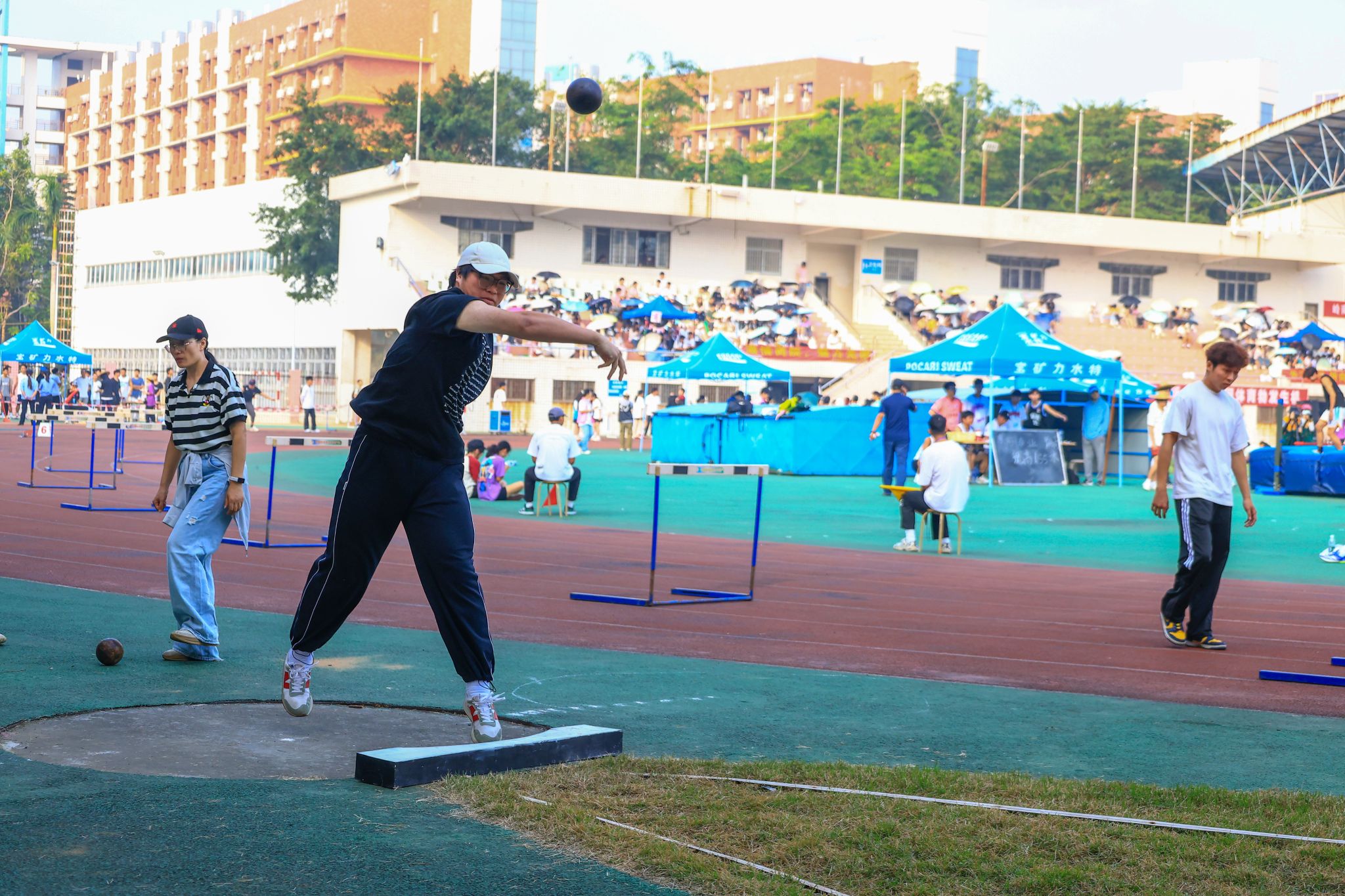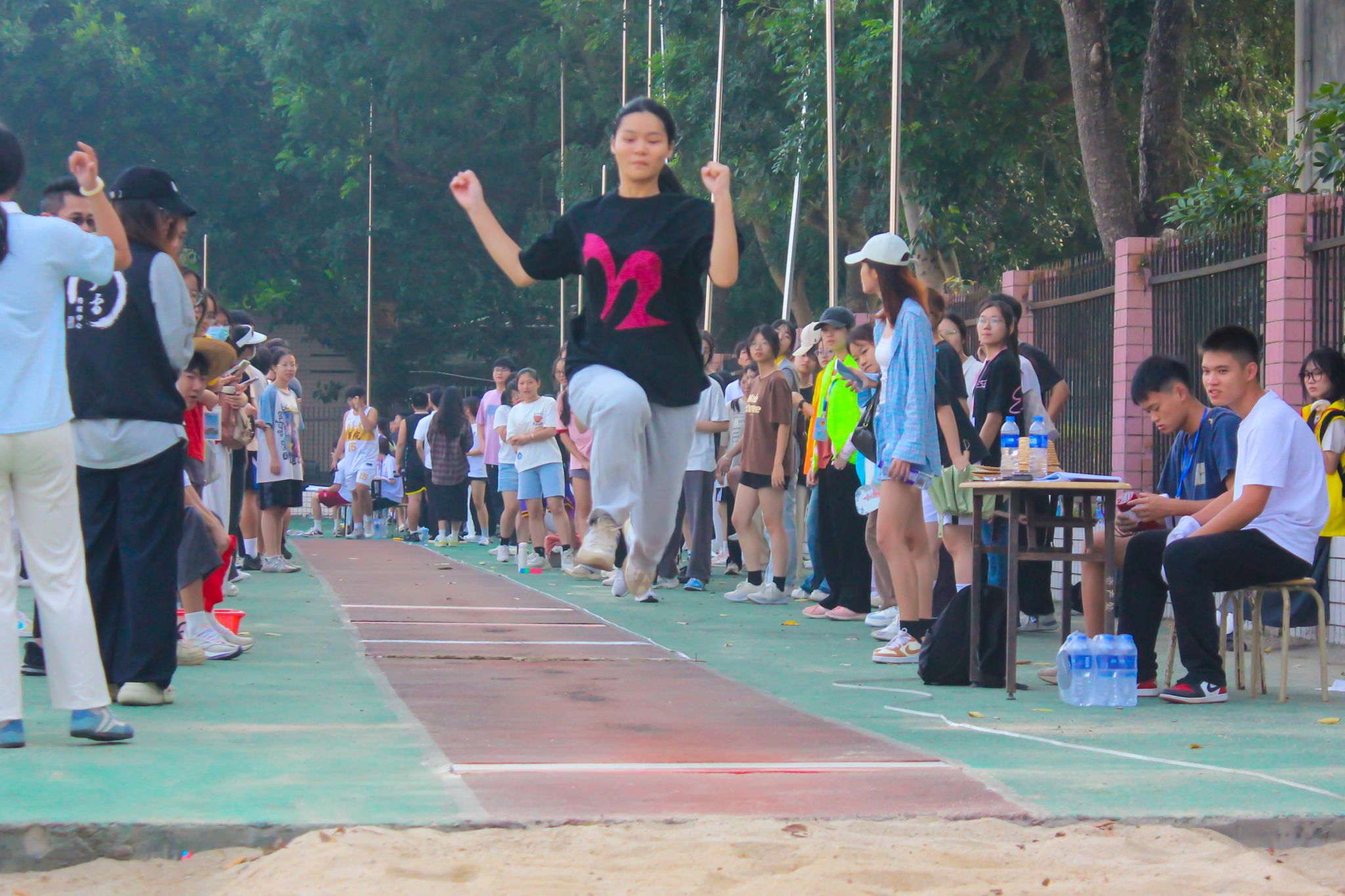 径赛跑道上竞赛正酣,田赛场地亦是热闹非凡,运动健儿们在不同的区域同时展开激烈角逐,共同演绎着校运会的精彩篇章。跳远赛场上,文传运动员们助跑、起跳,在空中划过一道道漂亮的弧线,他们不断挑战自身极限,力求跳出更远的距离。跳高比赛中,文传运动员们相互鼓励,彼此加油。他们在赛场上助跑起跳,身姿轻盈,每一次跳跃都带着对胜利的渴望。铅球场地里,文传运动员们摩拳擦掌,跃跃欲试。他们紧握着铅球,弯腰,蓄势,随着一声发力的低喝,铅球随即脱手而出,在空中划出或高或低的弧线,带着他们的期盼,远飞落地。赛后温同学分享道:“训练途中教练不仅给予悉心指导,还通过错误动作的示范让我对标准动作有了更清晰的认识,不过大早上比赛,肌肉容易僵硬,这对发挥是个不小的挑战。”