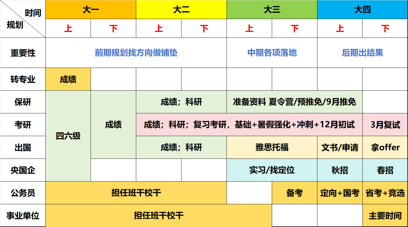 (大学生四年的升学规划参考)