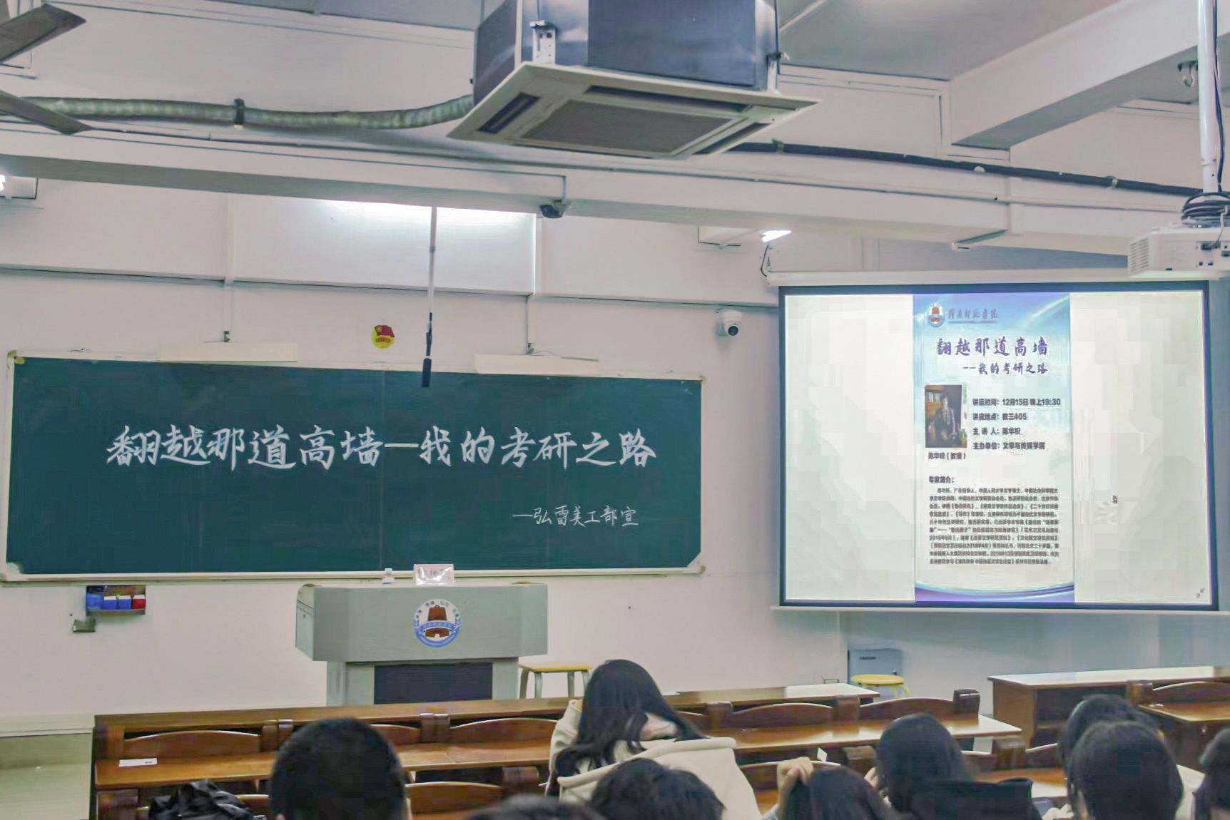 为了帮助我院学生更深入地理解考研趋势、明确目标、掌握有效方法,文学与传媒学院于12月15日晚在第三教学楼举办了一场杰出校友讲座。此次讲座特邀岭师文传学院杰出毕业生陈华积分享他的考研经历与策略。出席嘉宾包括文学与传媒学院党委副书记梁碧斐及优秀校友代表、文捷优学校校长陈红丽。