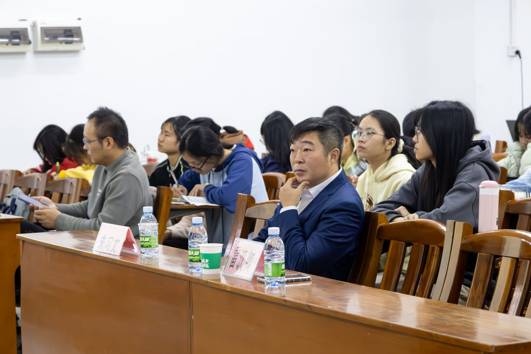 在讲座的最后,雷教授以饱含深情的寄语鼓励文传学子珍惜学习机会,勇于探索和创新,适应社会变化。“莫问前路何方,路在脚下延展。心之所向,素履以往,一步一印,且行且歌,方得始终。”他的发言激励了在场师生,引发了大家对学习和人生的深刻思考。