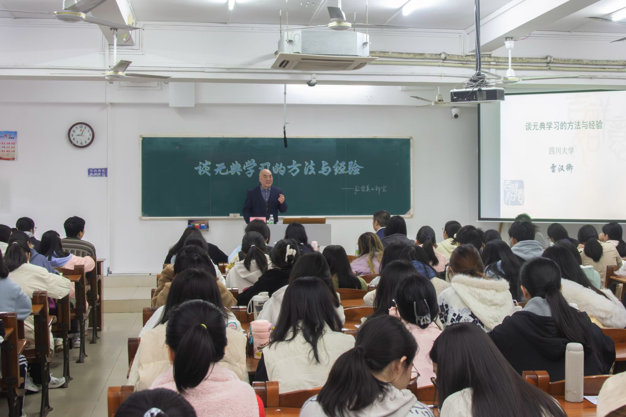 中华上下五千年,文献典籍浩如烟海,为了激发文传学子对元典的学习兴趣,12月21日早上9点,文学与传媒学院于第三教学楼205教室开展了主题为“谈元典学习的方法与经验”的学术讲座,四川大学文学与新闻学院雷汉卿教授担任本次讲座主讲嘉宾。