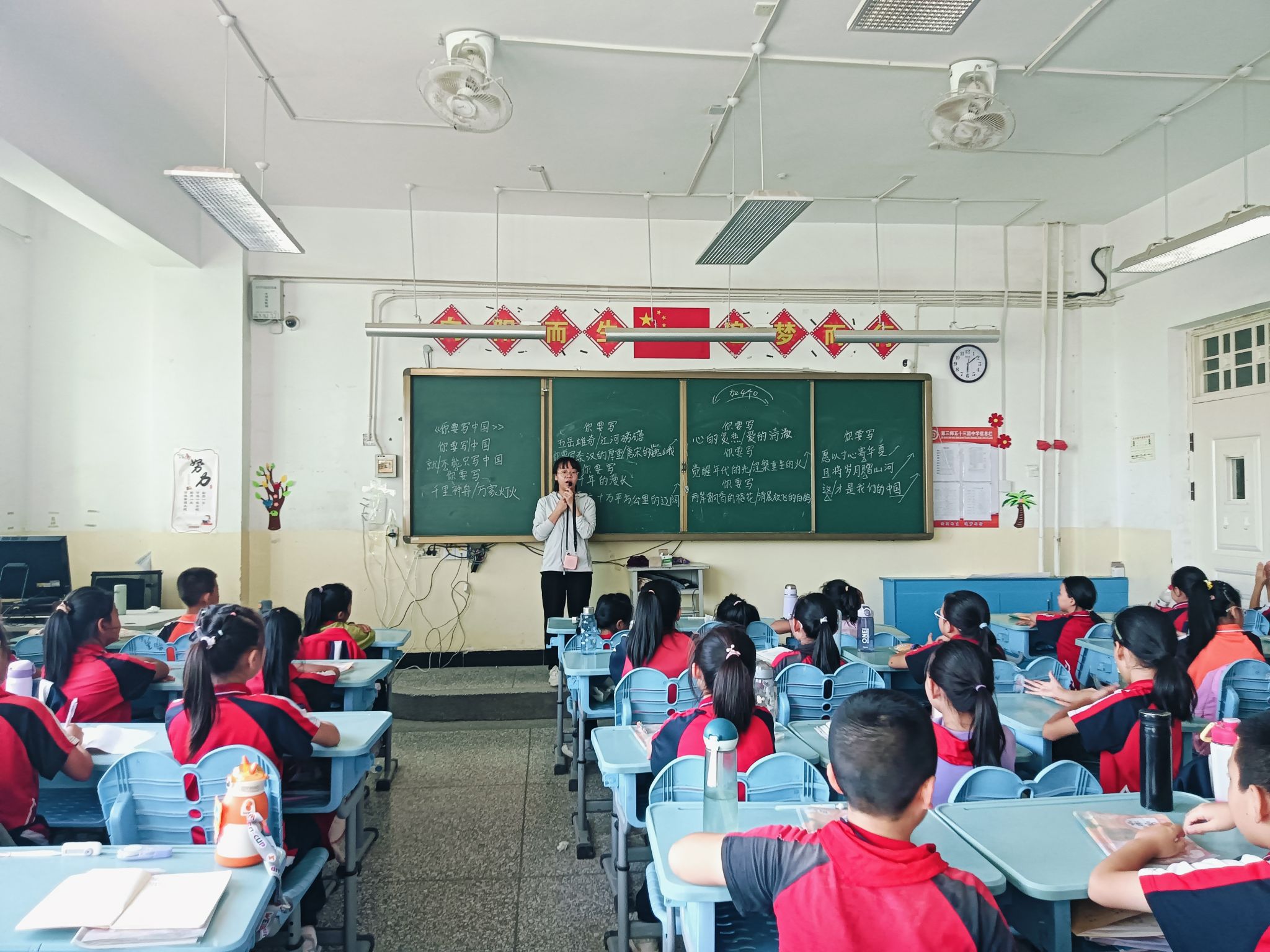 初到边疆,她被独特自然景观吸引的同时,也面临环境饮食的差异和人际陌生感。曾雨曼带着为边疆教育贡献力量的使命感,积极投身于支教工作。她首先了解了所带班级的基本学情,并针对学生的基本情况进行备课,采取多样化的教学模式,设计符合学生的奖惩制度,提高学生的学习兴趣。例如通过加分、集章、玩课后练习游戏,让学生更好掌握课堂知识并提高上课积极性。她特别强调课堂作业的批改要细心认真,对课堂内容掌握不到位的同学需要在课后花时间辅导。针对学生的具体学情,曾雨曼坦言,应更加注重国家通用语言文字的学习,她和该校王敏老师共同负责开展朗诵社团,更好地提升学生们的国语水平,传承红色文化与民族精神。在她们的精心排练下,元旦晚会上《彩色的中国》这一节目获得学校领导的一致好评。