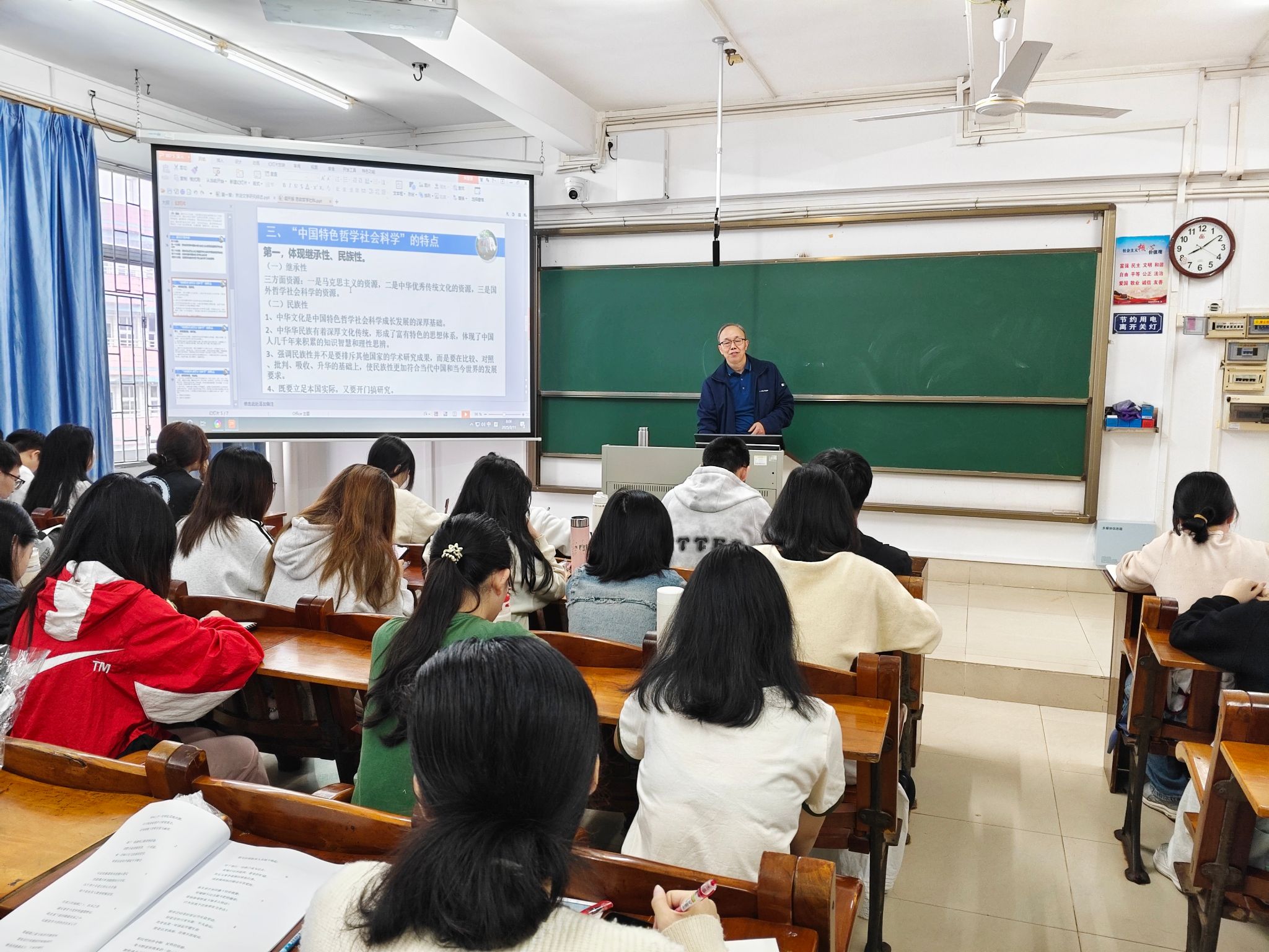 2025年3月11日,文学与传媒学院院长阎开振以“深学细悟习近平总书记在哲学社会科学工作座谈会上的重要讲话精神”为题在教三706为文传学子开讲2025年春季学期院长思政第一课。
