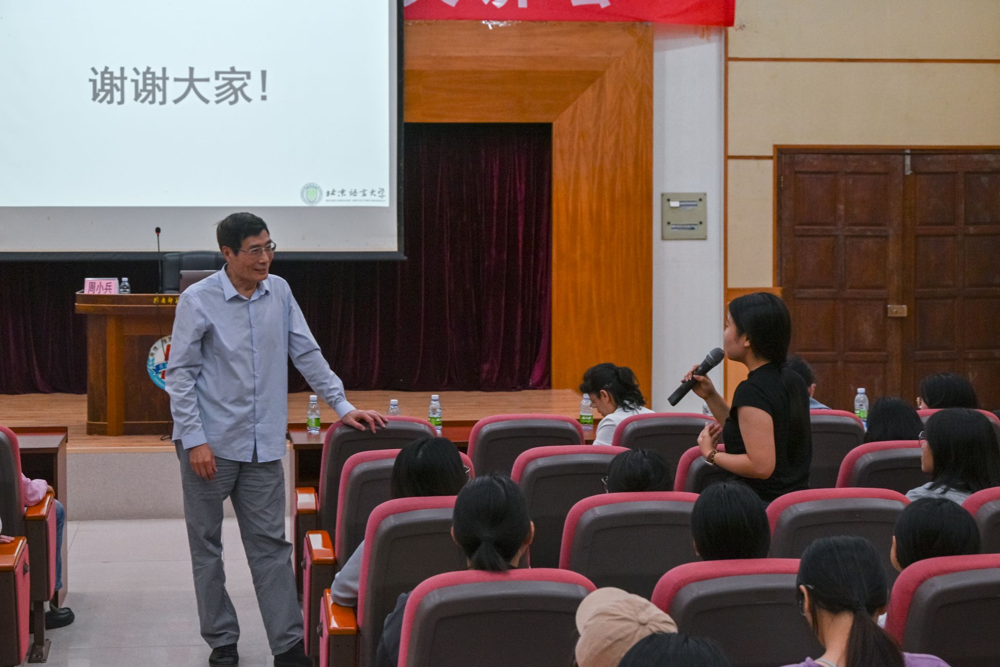 周小兵教授认真聆听同学疑问(张宇鑫 摄)